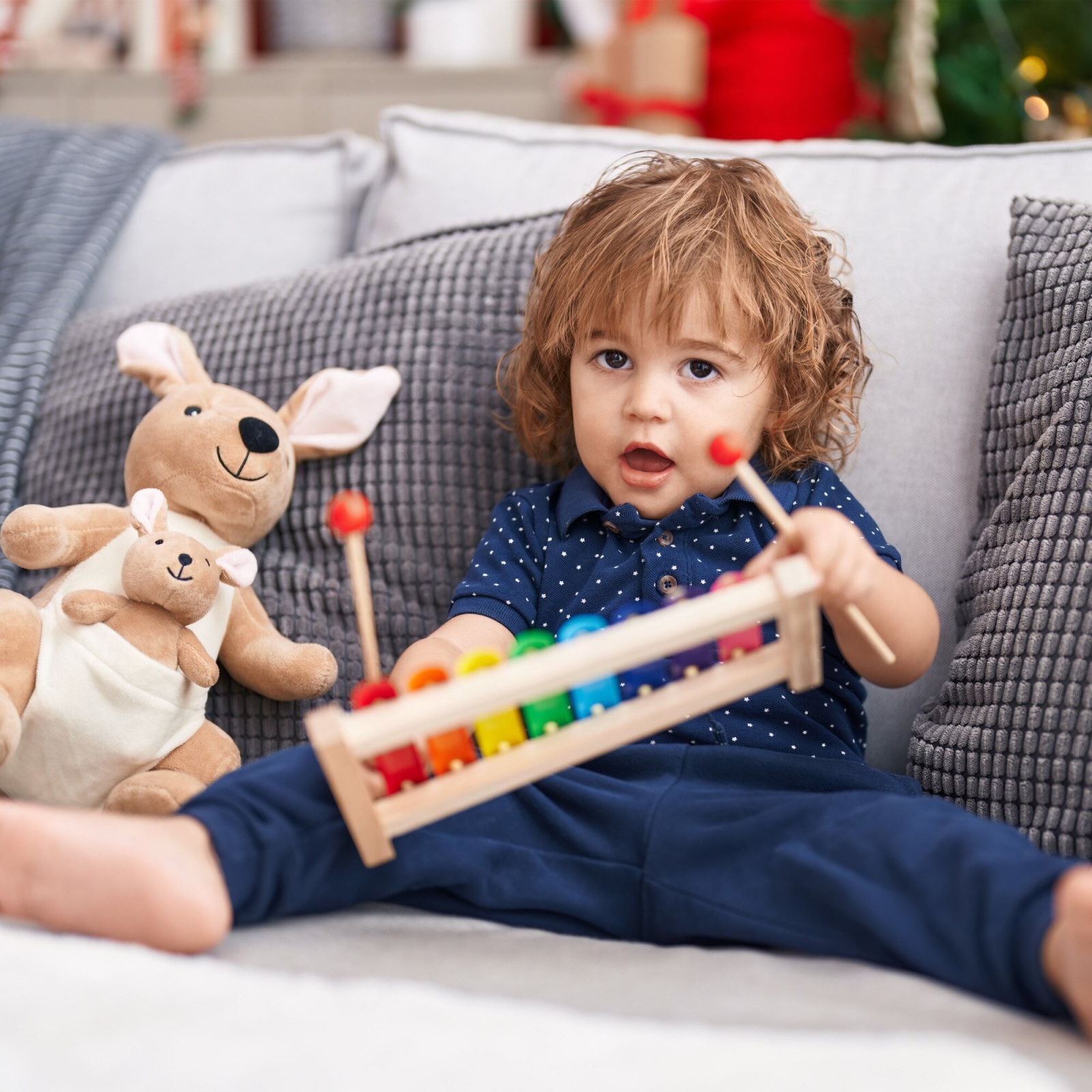 Cu un cadru din lemn vibrant si opt placi metalice in culori vii, acest xilofon este nu doar un instrument muzical, ci si o modalitate excelenta de a dezvolta abilitatile motorii si simtul ritmului al micutilor artisti in devenire.