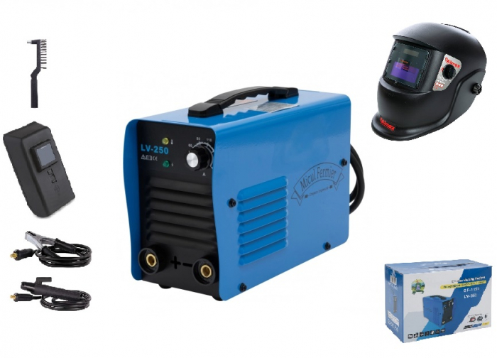 Invertorul Micul Fermier LV-200S, GF-0737 este un transformator de curent ce sudeaza cu arc electric folosind electrozi acoperiti MMA sau TIG ce pornesc arcul electric prin contact.