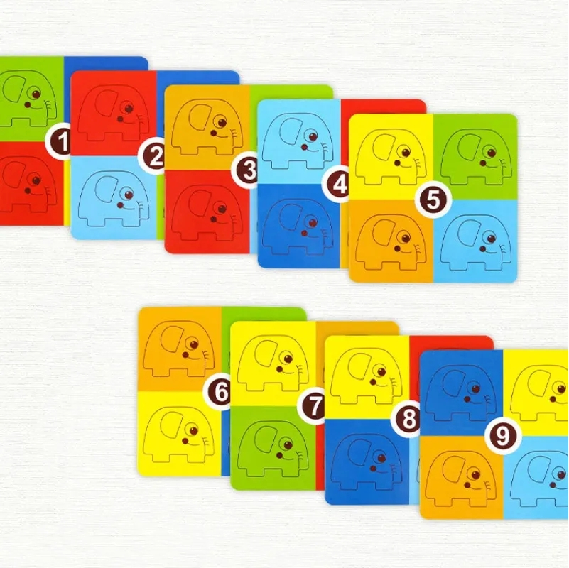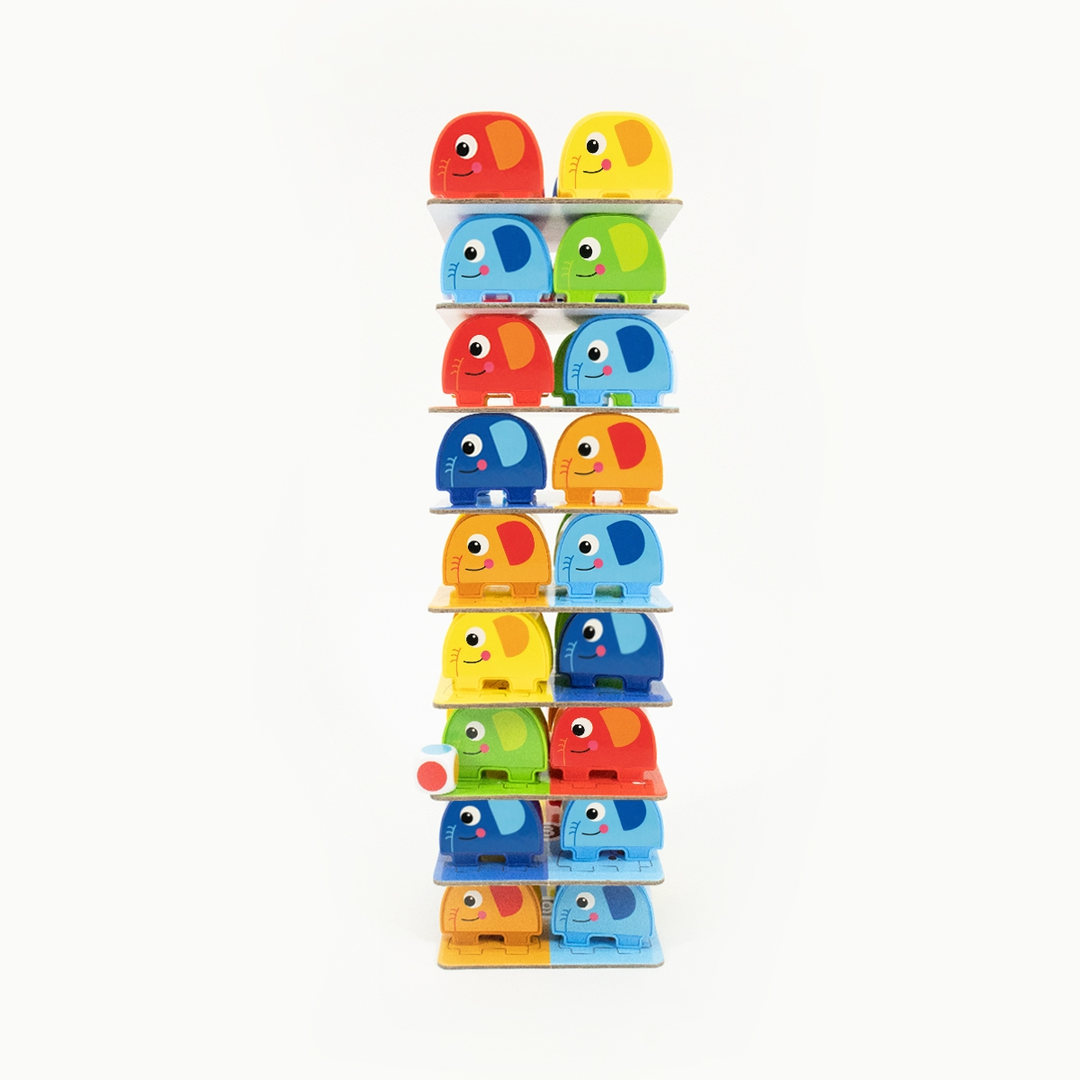 - Jocul presupune aranjarea unei turelete in functie de culoarea elefantilor de pe card