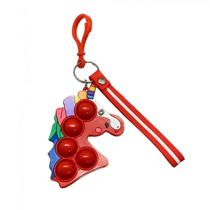 Jucarie antistres din silicon, Flippy, Pop It Now and Flip It, Simple Dimple, Breloc, Unicorn, Rosu