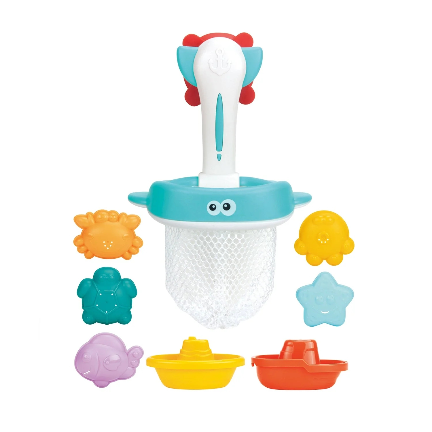 Setul include plasa/cos de pescuit si 7 jucarii.