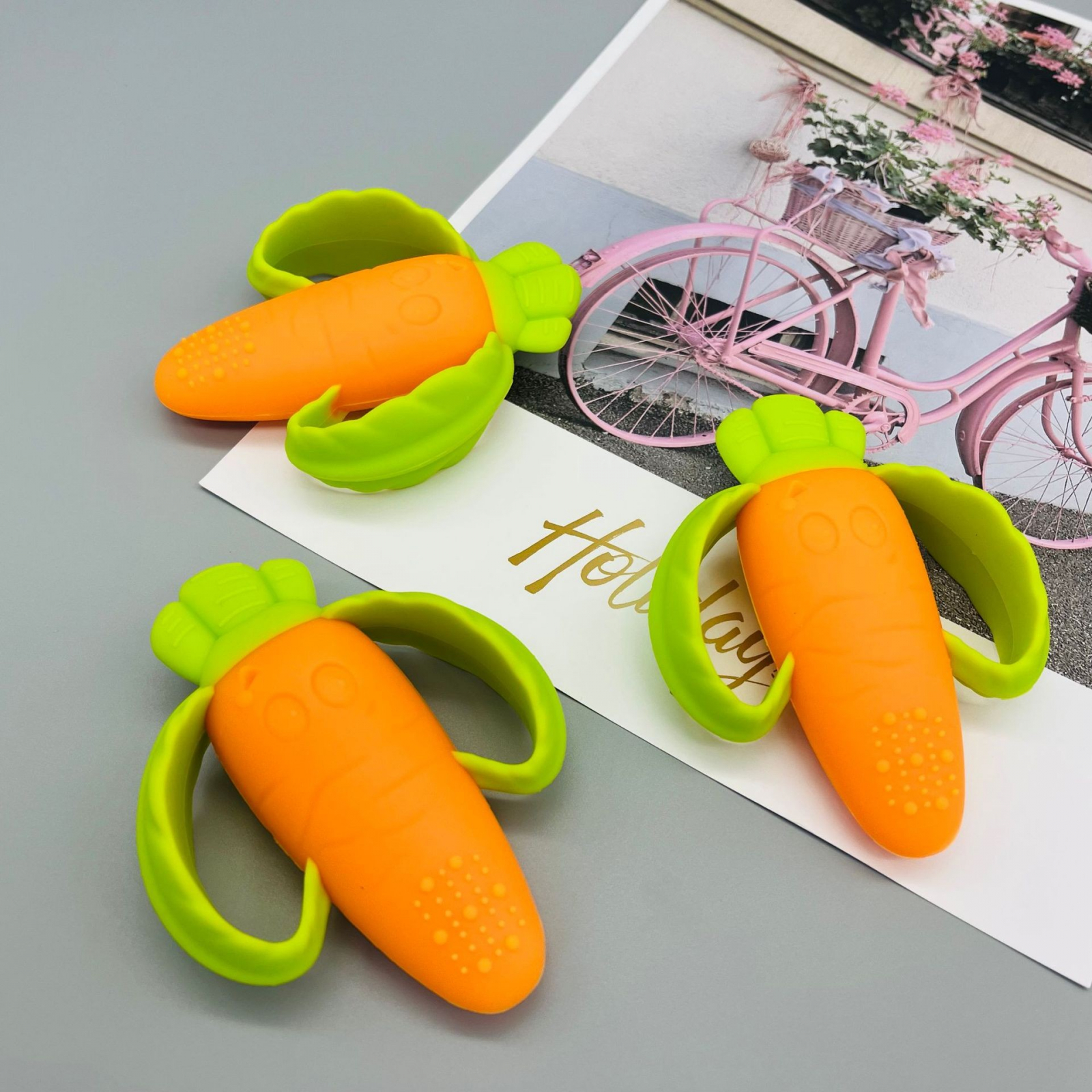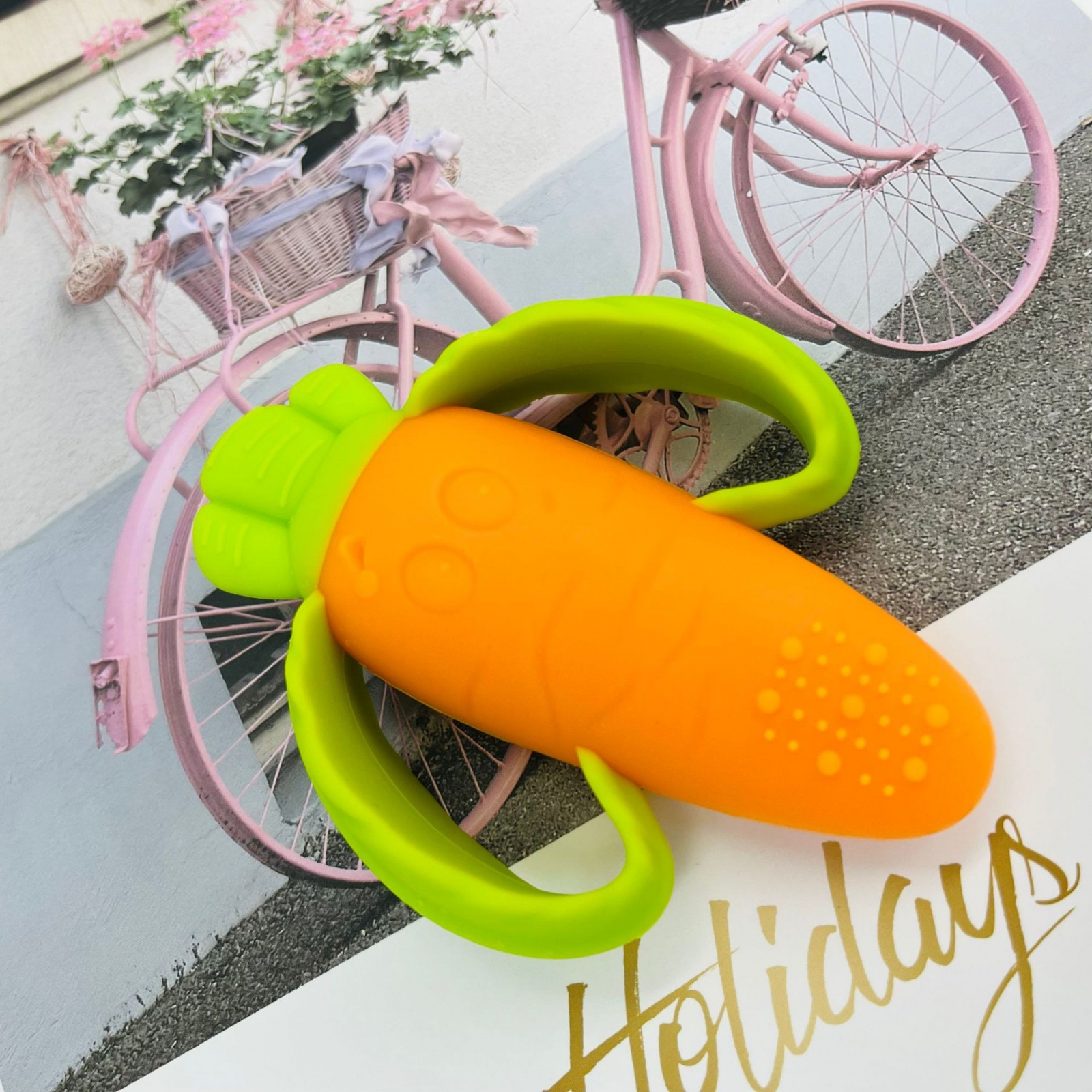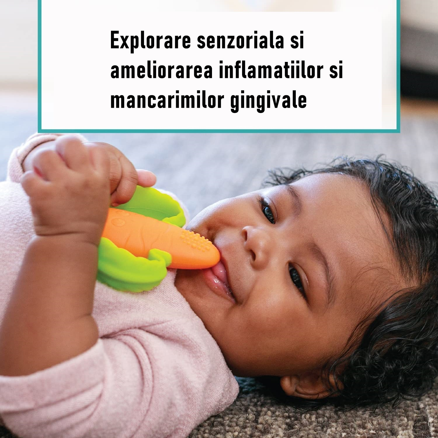 Design atractiv și ergonomic: Jucăria în formă de morcov are un design captivant, perfect pentru a atrage atenția bebelușilor. Forma și dimensiunile sale sunt ergonomice, ușurând prinderea și manipularea pentru bebeluși.