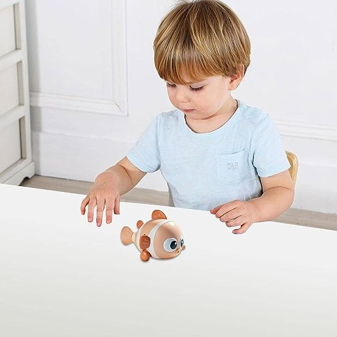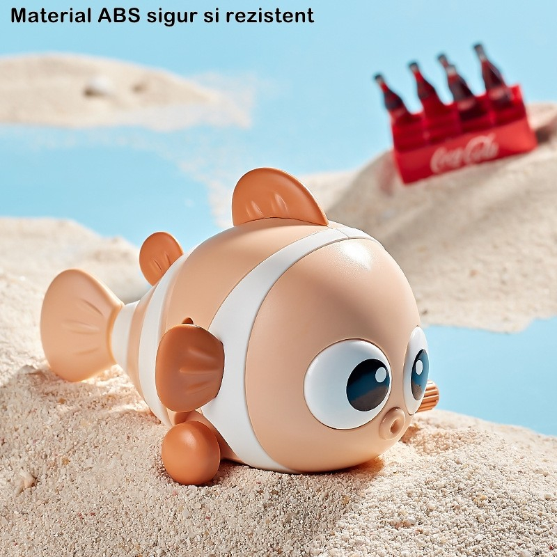 Învățare prin experiență: Jucăria "Flippy" nu doar aduce distracție, ci și oportunități de învățare prin experiență. Copiii vor putea observa cum mișcările pestișorului sunt generate de acționarea cheiței. Această experiență simplă îi va familiariza cu conceptul de cauză și efect, stimulând gândirea logică și creativă. În timp ce se bucură de joc, vor dezvolta în mod natural abilități de observație și analiză, contribuind la dezvoltarea lor cognitivă.