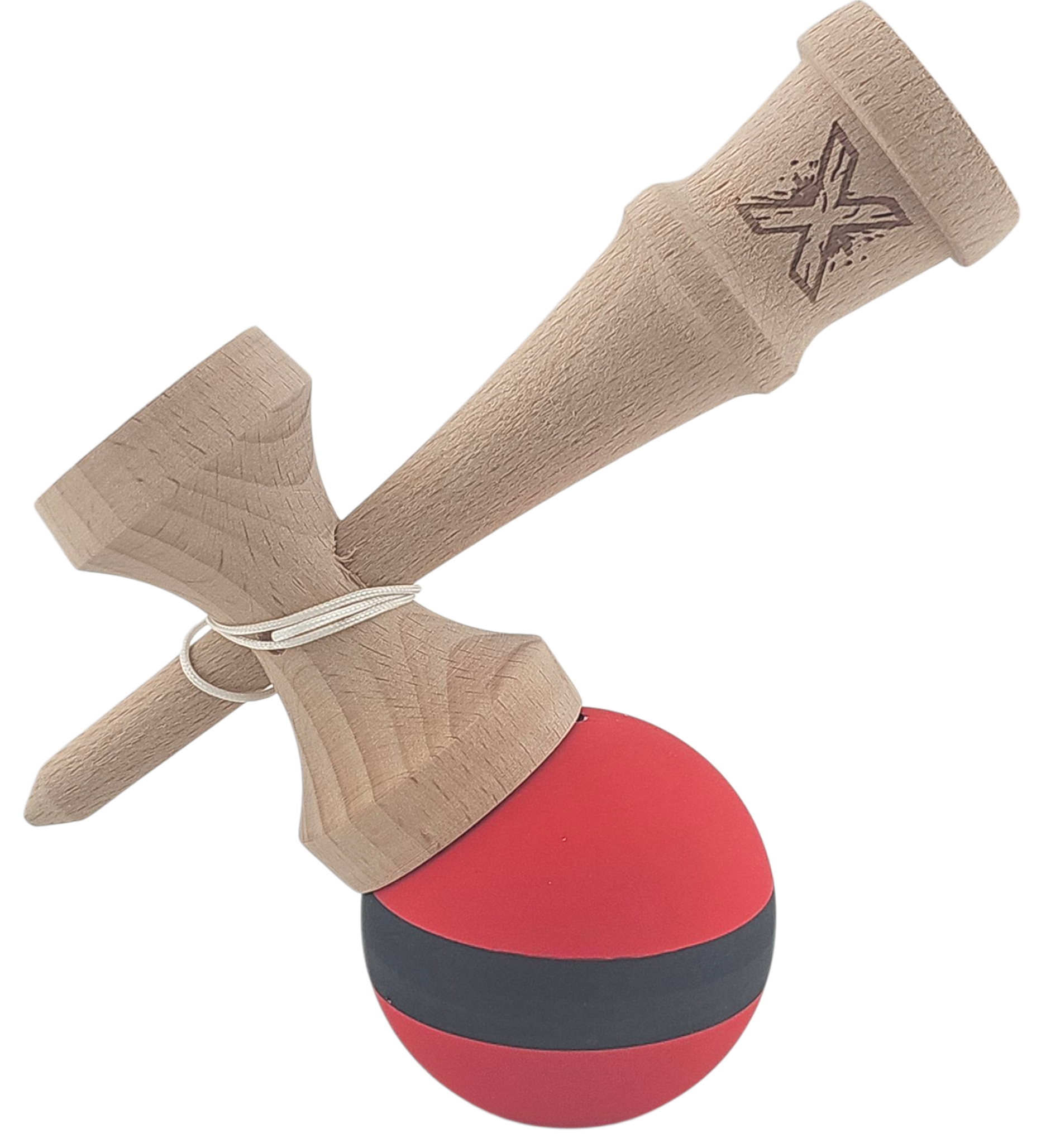 Kendama X Originala, Profesionala, Flippy, din Lemn, Rubber Grip, 18 cm, Rosu/Negru