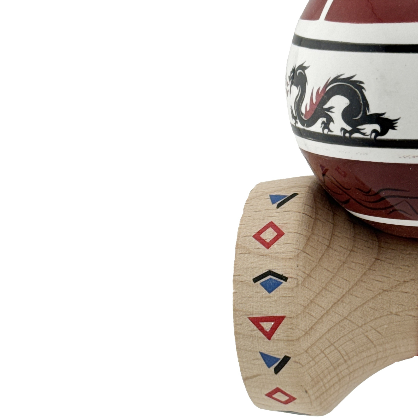 Kendama X Originala, Profesionala, Flippy, DRAGON Series, Super Sticky cu Cupe Mari King Size V3, Rulment Metalic si Gaura in Baza, din Lemn 18 cm, Ata 62/65 cm, Alb/Rosu inchis