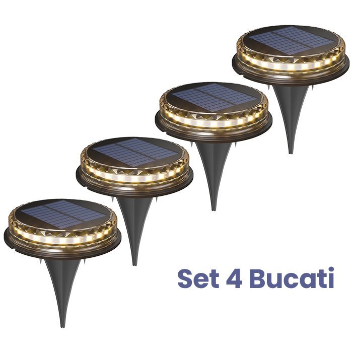 Energie solara si timp lung de functionare - Fiecare lampa solara este echipata cu o baterie de 600 mAh, care se incarca cu energie solara in timpul zilei si ofera energie pentru cele 12 lumini LED principale si laterale incorporate care lumineaza noaptea. Dureaza doar 8-10 ore pentru a fi incarcat complet si poate functiona timp de 8-12 ore.