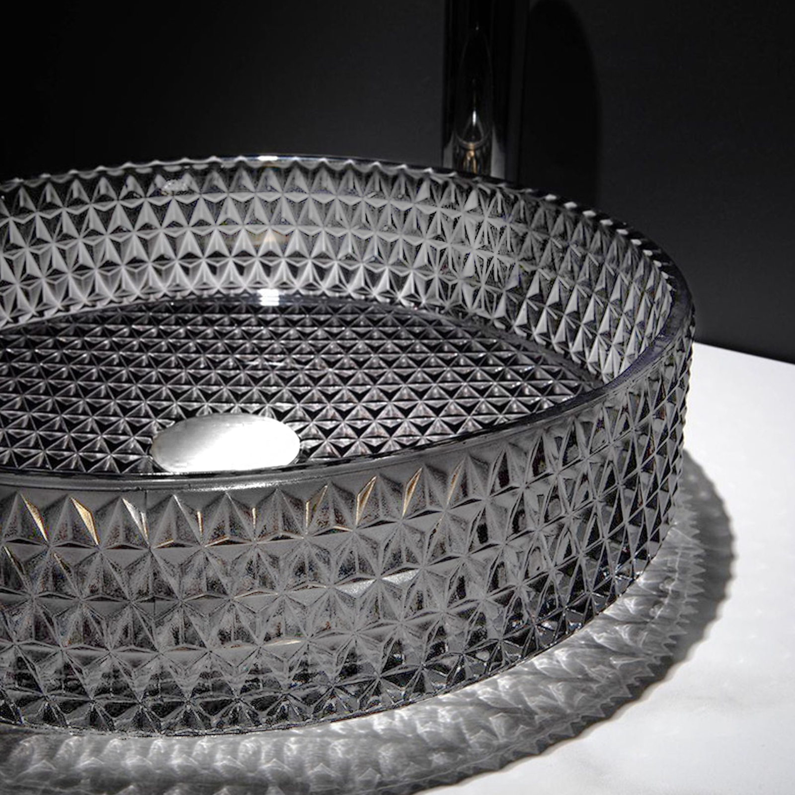 Lavoar Sandonna Mira Negru total Lavoarul Sandonna Mira Negru total este realizat din sticlă transparentă cu finisaj lucios, anti-mătuire. Suprafața transparentă, cu reflexii luminoase, adaugă un aer modern, iar dimensiunile sale compacte îl fac ideal atât pentru băile spațioase, cât și pentru cele mai mici. Caracteristici principale: Dimensiuni: Perfect echilibrat, cu un diametru de 40 cm și o înălțime de 12 cm. Montare: Pe blat Material: Sticlă de înaltă calitate, rezistentă la uzură și ușor de întreținut. Întreținere ușoară: Suprafața netedă și lucioasă este simplu de curățat, menținând aspectul impecabil în timp.