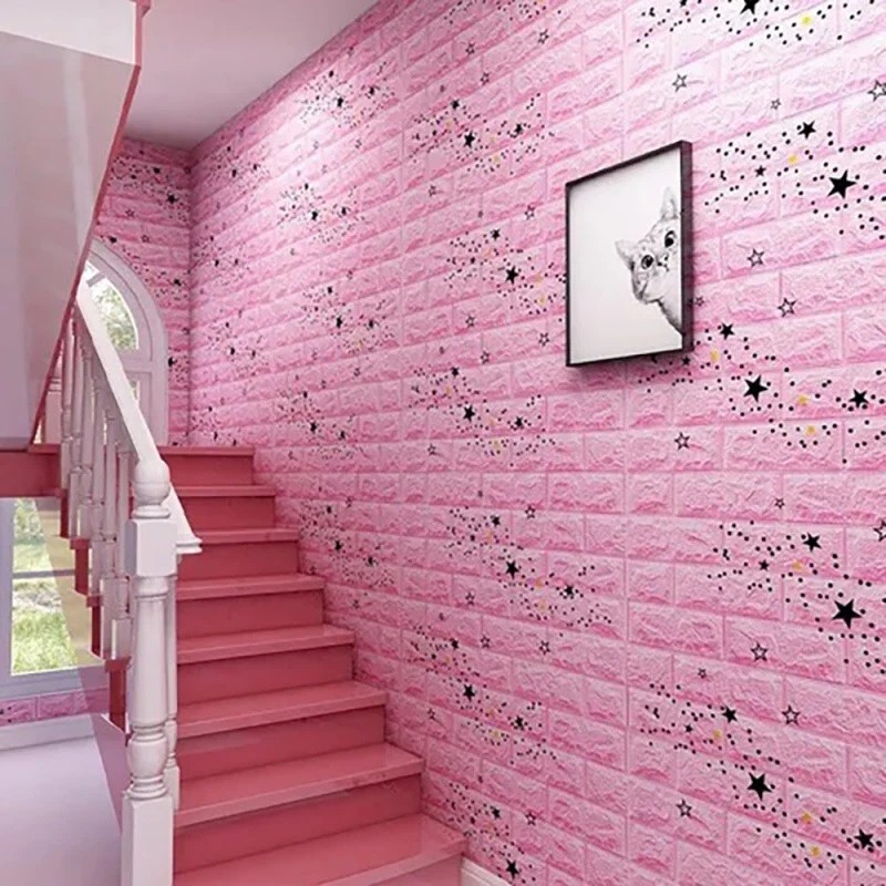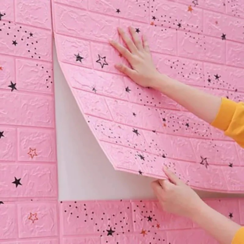 ! LICHIDARE DE STOC ! Set 10 Placi Tapet 3D, Flippy, 70 x 77 cm, Grosime 3 mm, din Polietilena, Tip Caramida, Model Stele, Suprafata acoperita 5.3 mp, Roz