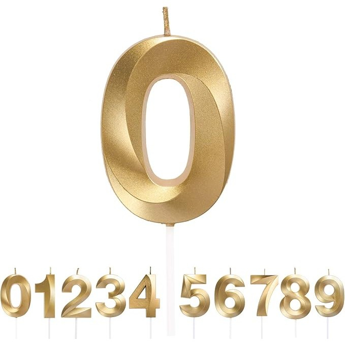 Lumânare Cifră 0, Flippy®, Model Diamond, 5 x 3.4 cm, Auriu