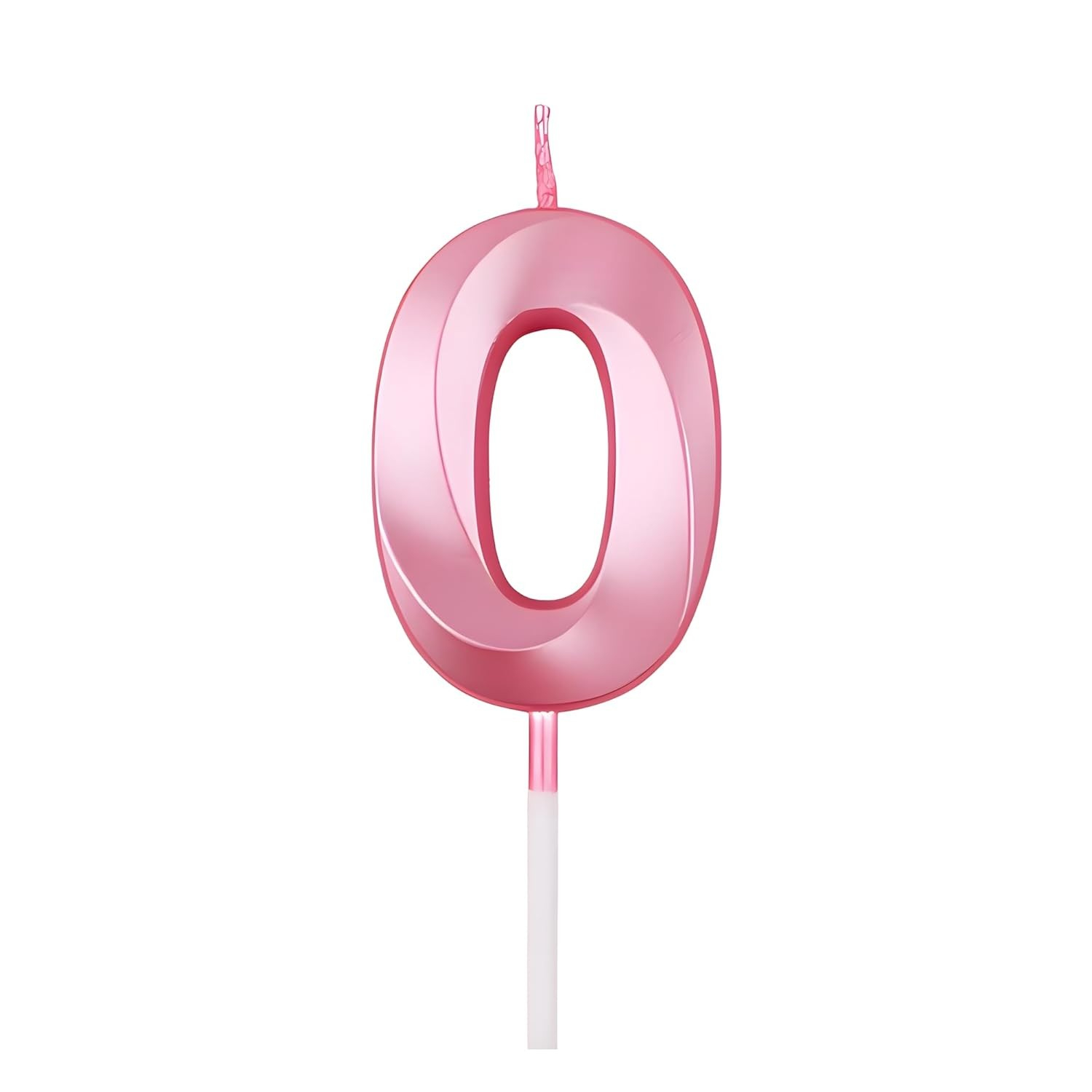 Lumânare Cifră 0, Flippy®, Model Diamond, 5 x 3.4 cm, Roz