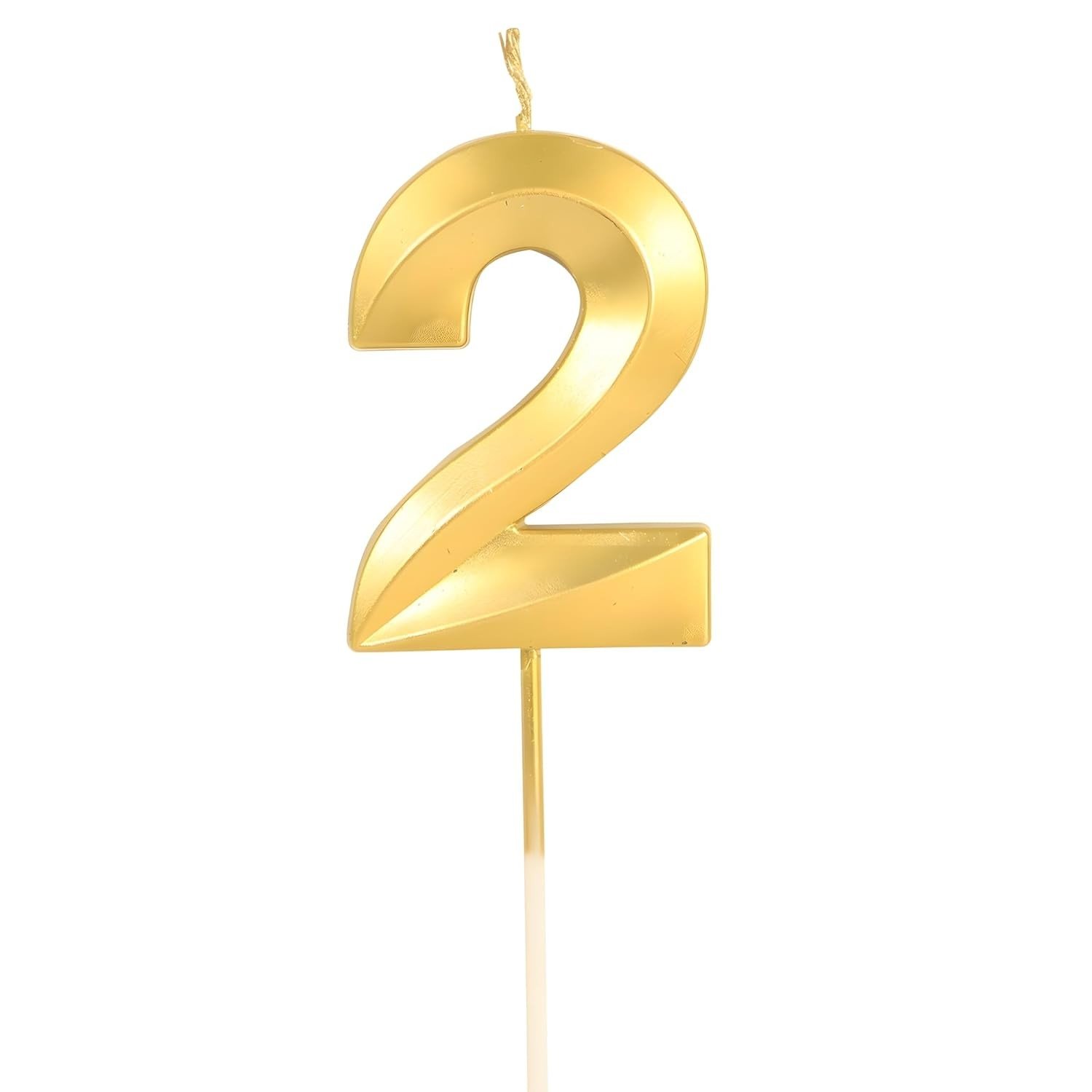 Lumânare Cifră 2, Flippy®, Model Diamond, 5 x 3.4 cm, Auriu