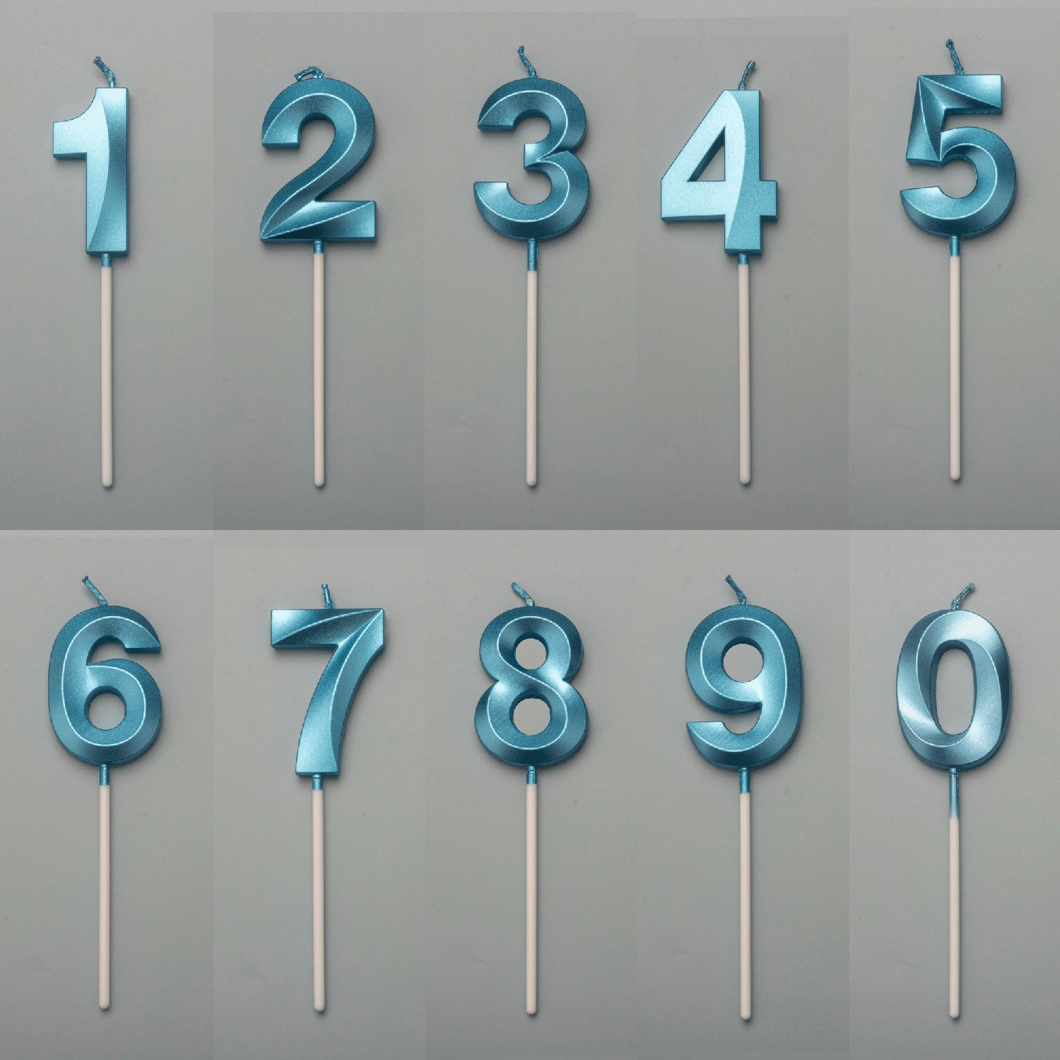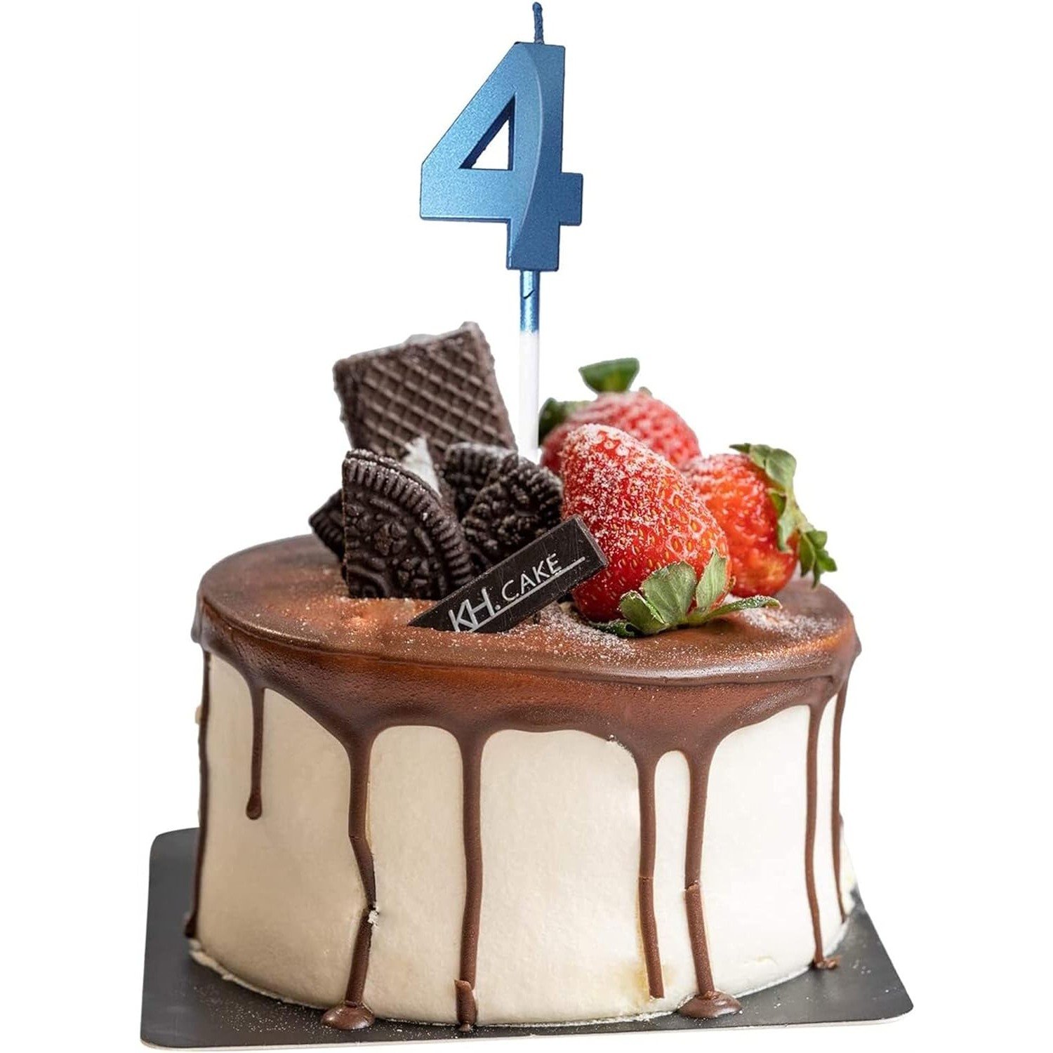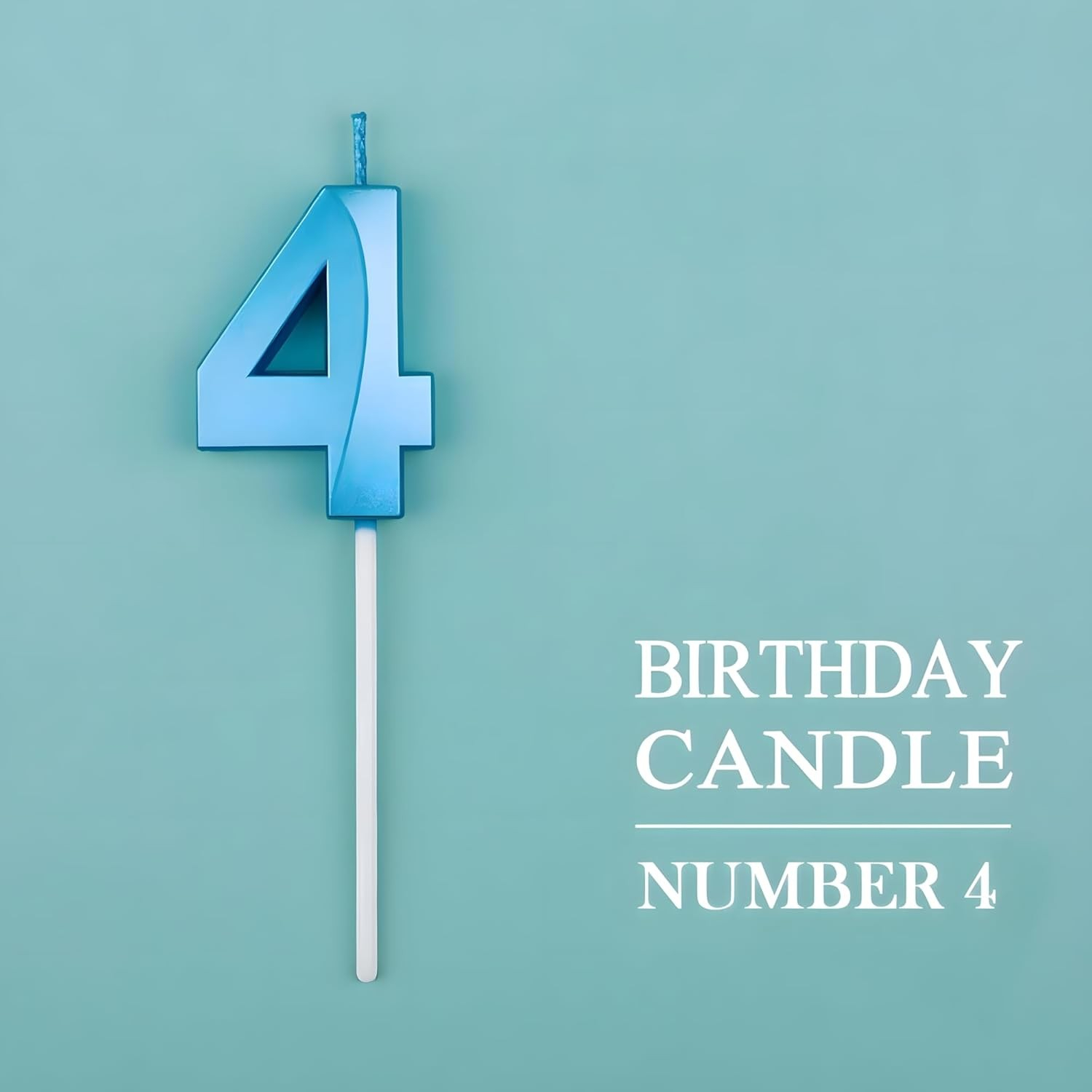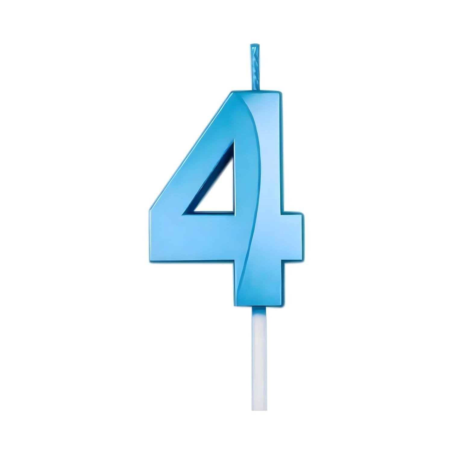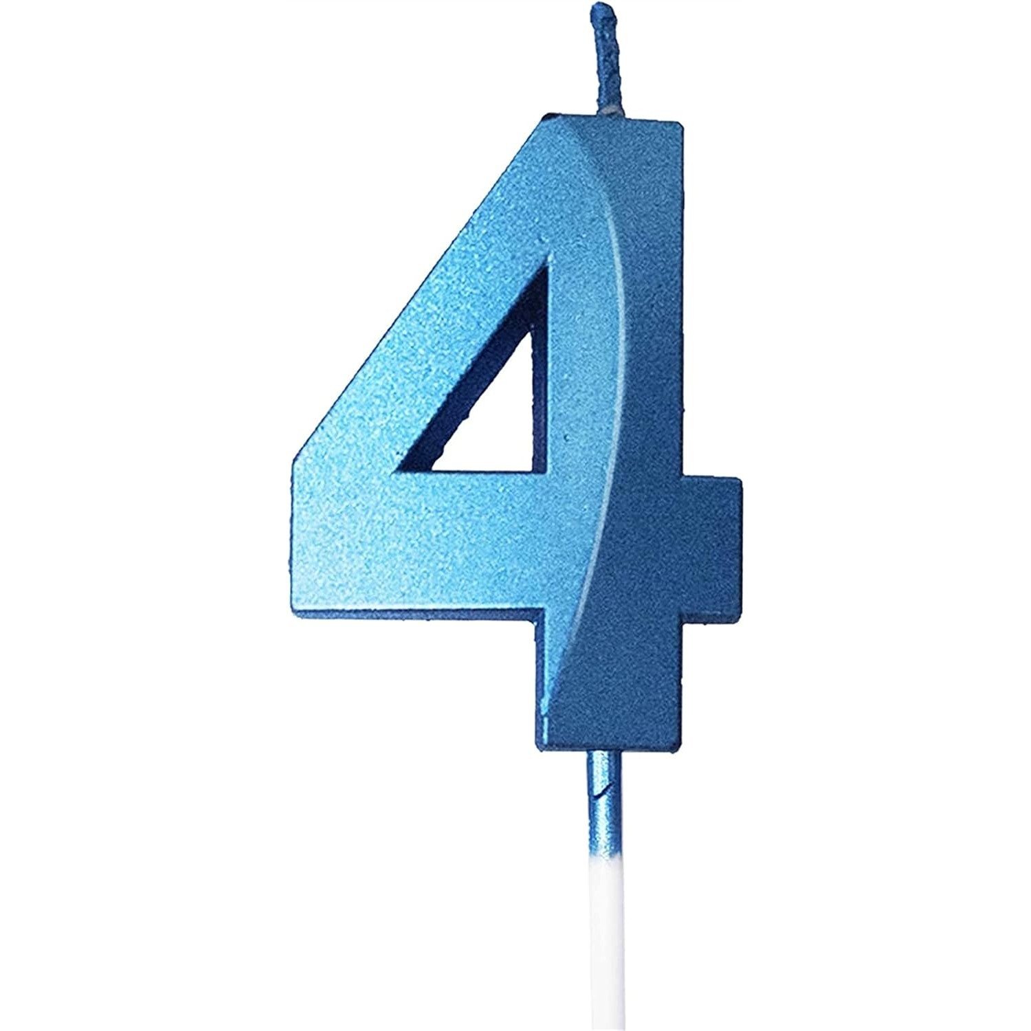 Lumânare Cifră 4, Flippy®, Model Diamond, 5 x 3.4 cm, Albastru