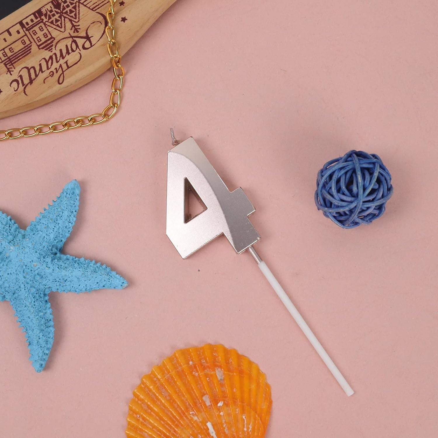 Lumânare Cifră 4, Flippy®, Model Diamond, 5 x 3.4 cm, Argintiu