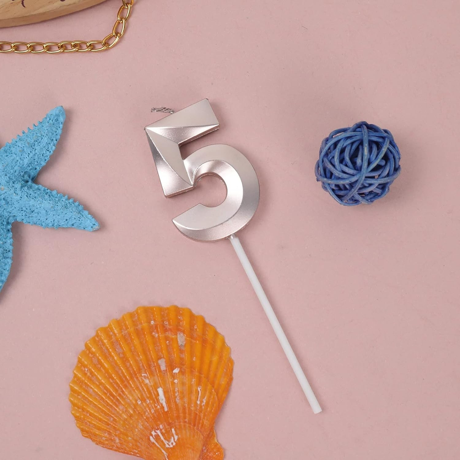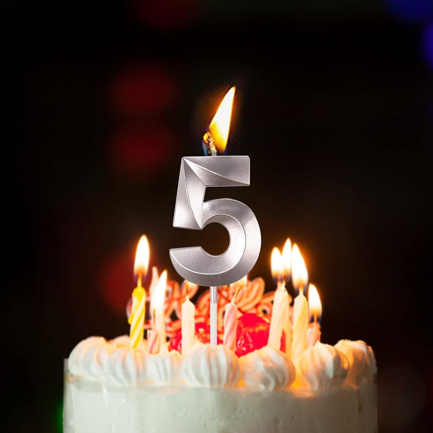 Lumânare Cifră 5, Flippy®, Model Diamond, 5 x 3.4 cm, Argintiu