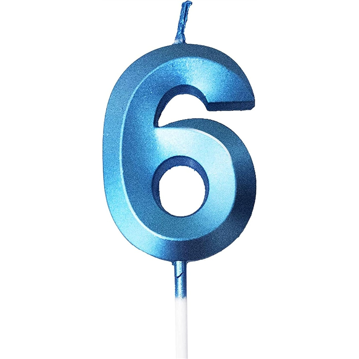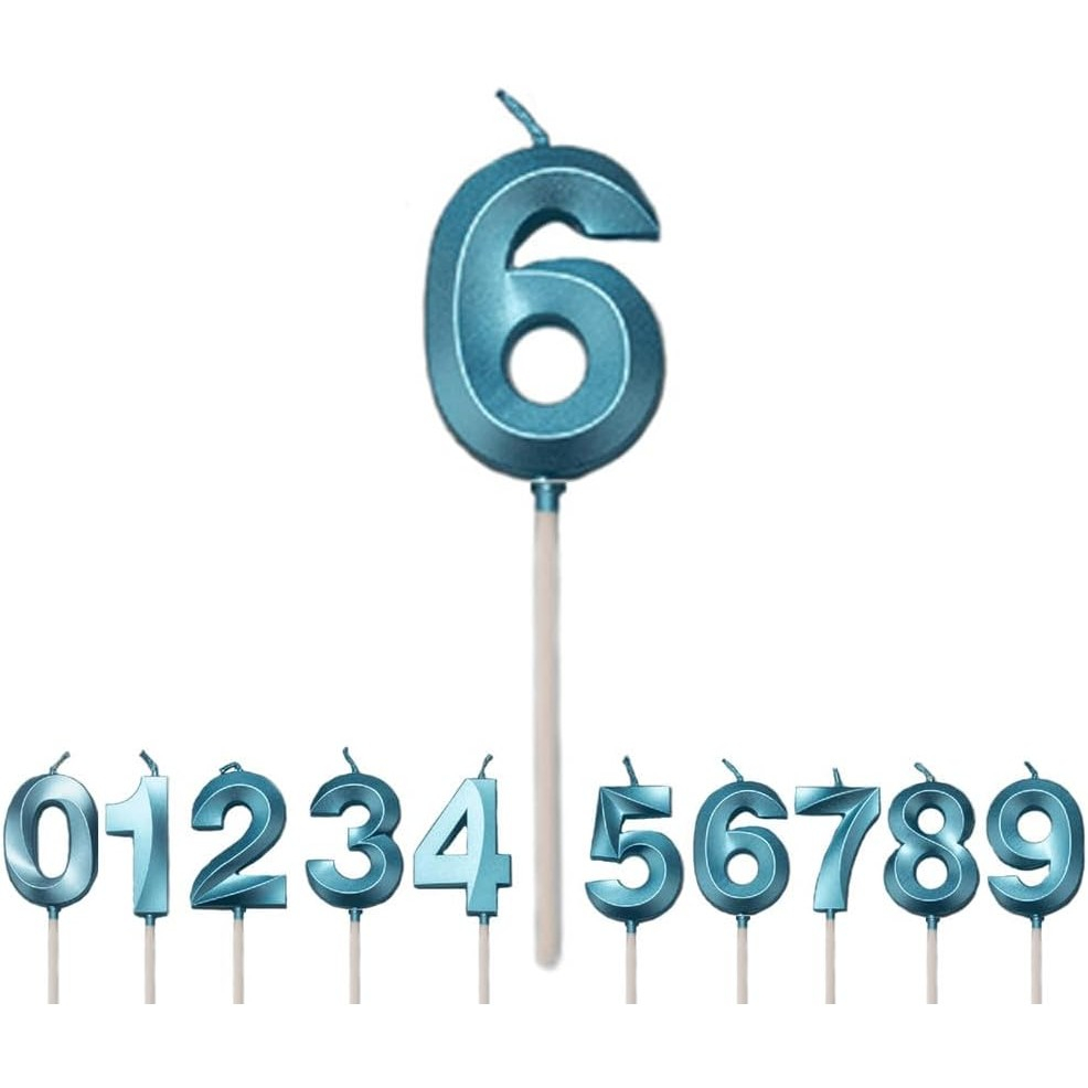 Lumânare Cifră 6, Flippy®, Model Diamond, 5 x 3.4 cm, Albastru