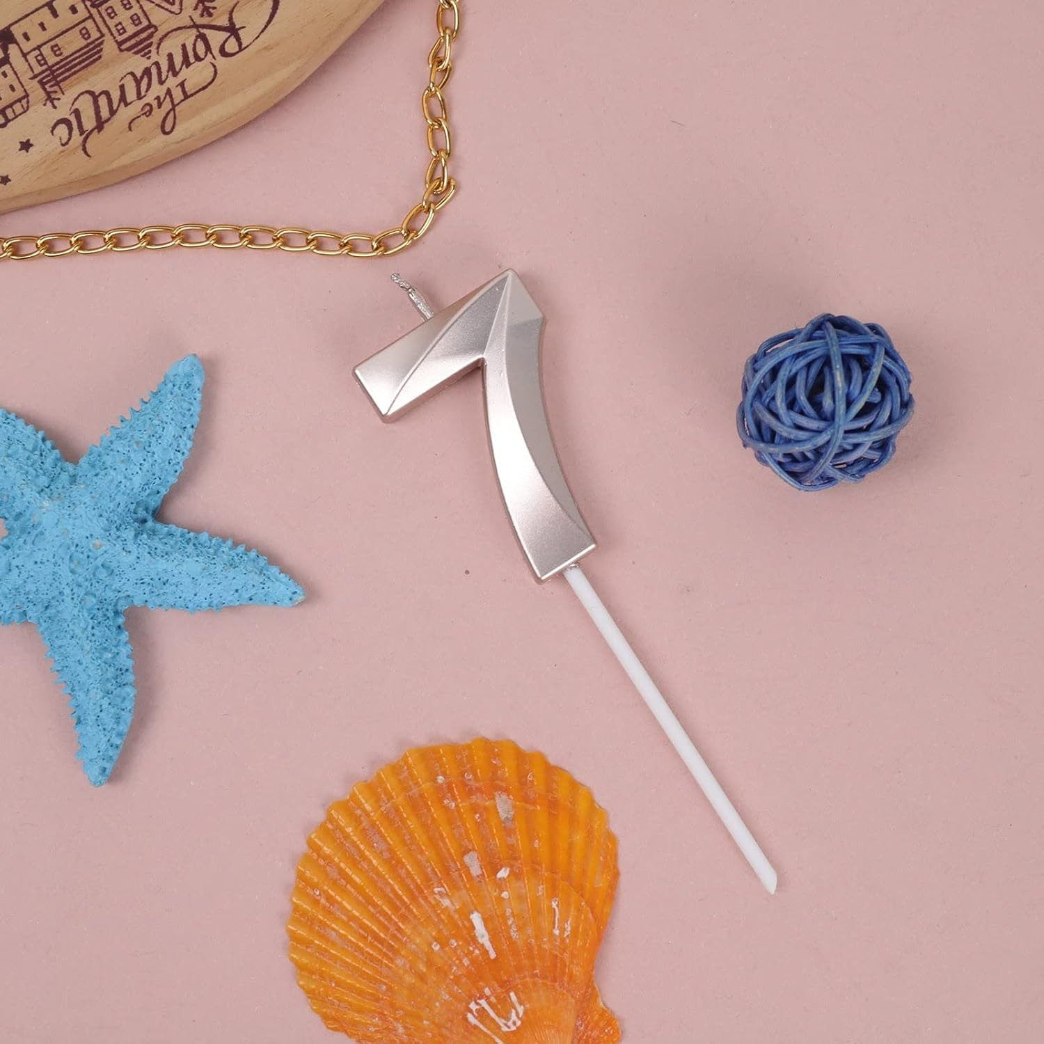 Lumânare Cifră 7, Flippy®, Model Diamond, 5 x 3.4 cm, Argintiu