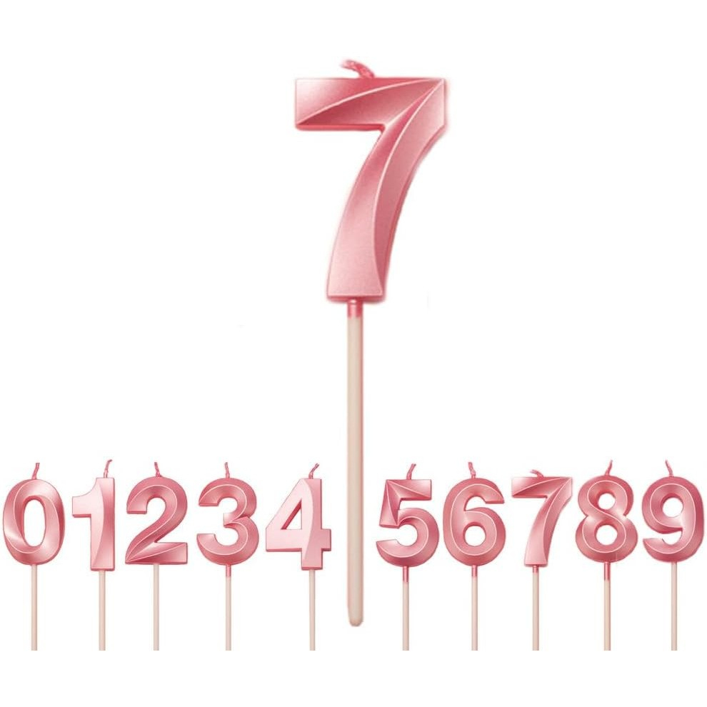 Lumânare Cifră 7, Flippy®, Model Diamond, 5 x 3.4 cm, Roz