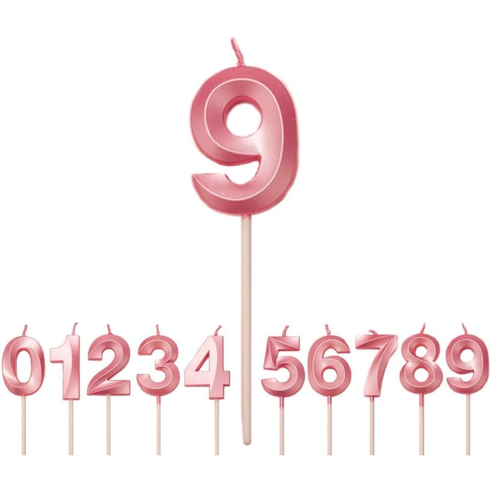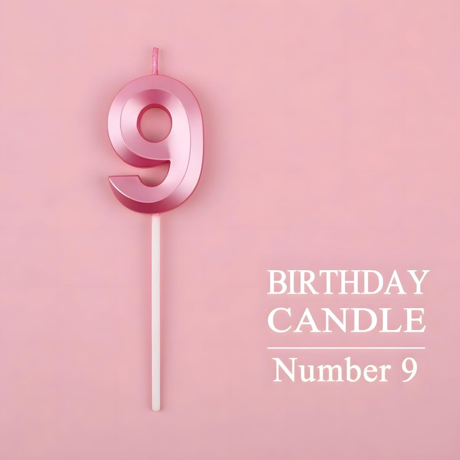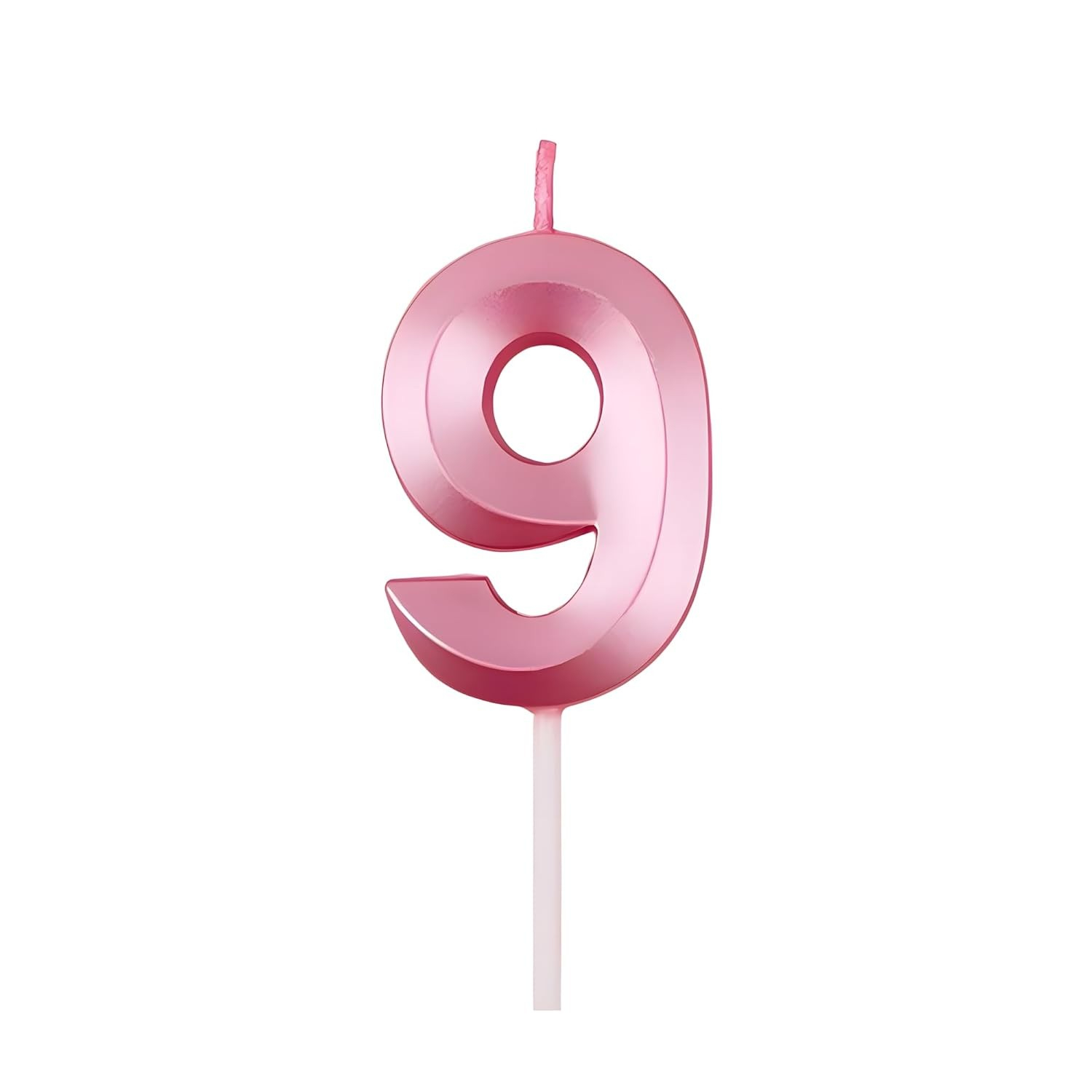 Lumânare Cifră 9, Flippy®, Model Diamond, 5 x 3.4 cm, Roz