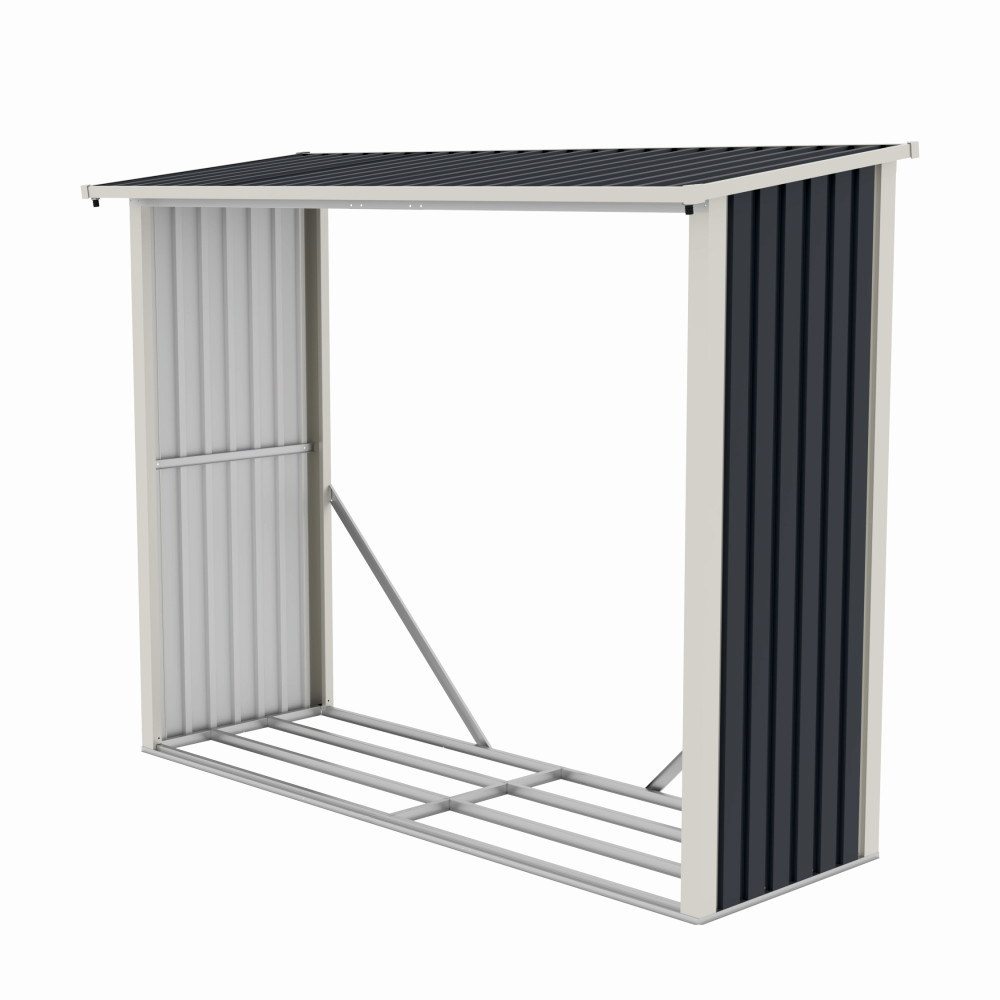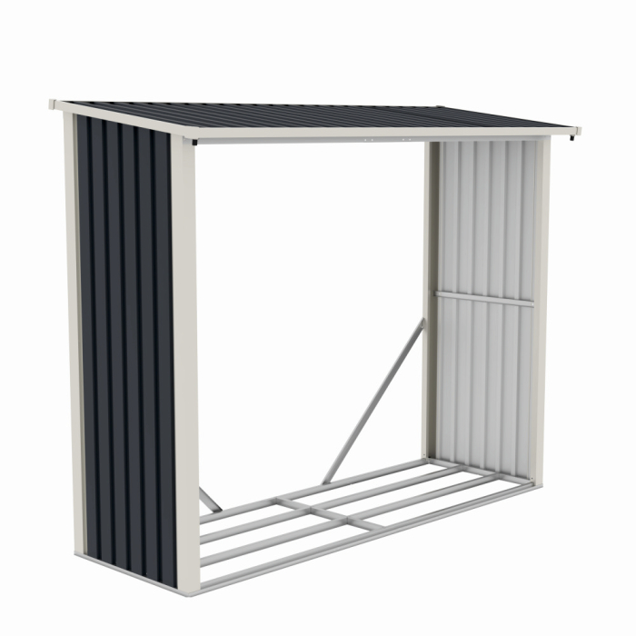 Magazie de lemne, pentru depozitare ideala, din metal zincat vopsit MESTERINO WA-B, Gri/Bej, dimensiuni 242x89x190 cm