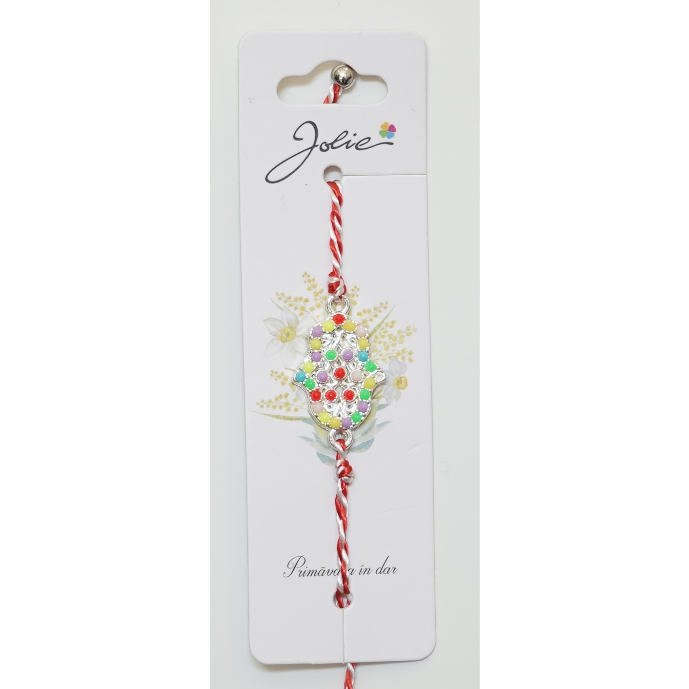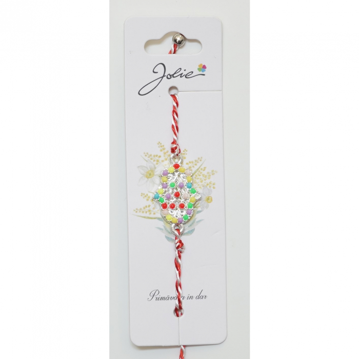 Martisor Bratara Alb-Rosu cu Pandantiv Metalic, Model 2