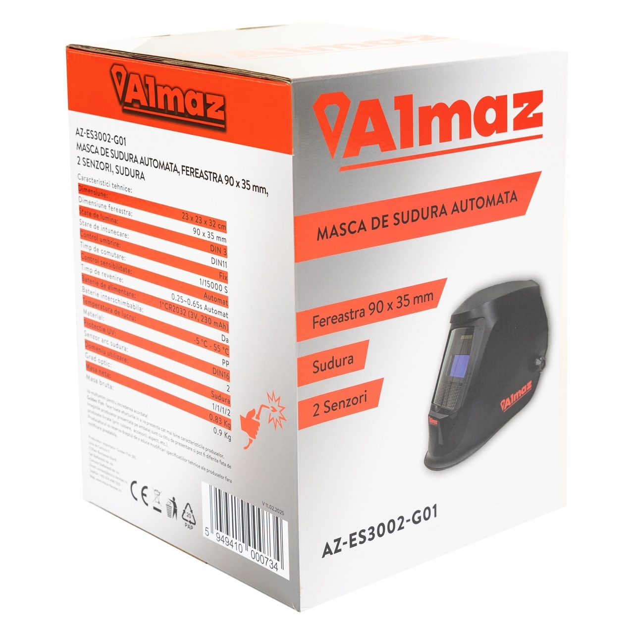 Masca de sudura Almaz, automata, fereastra 90x35mm, 2 senzori, sudura, AZ-ES3002-G01. Masca de sudura este un set de tehnologie de filtrare spectrala, tehnologie de control inductiv fotoelectric, tehnologie de control al luminii cu cristale lichide intr-un singur produs de inalta tehnologie. |