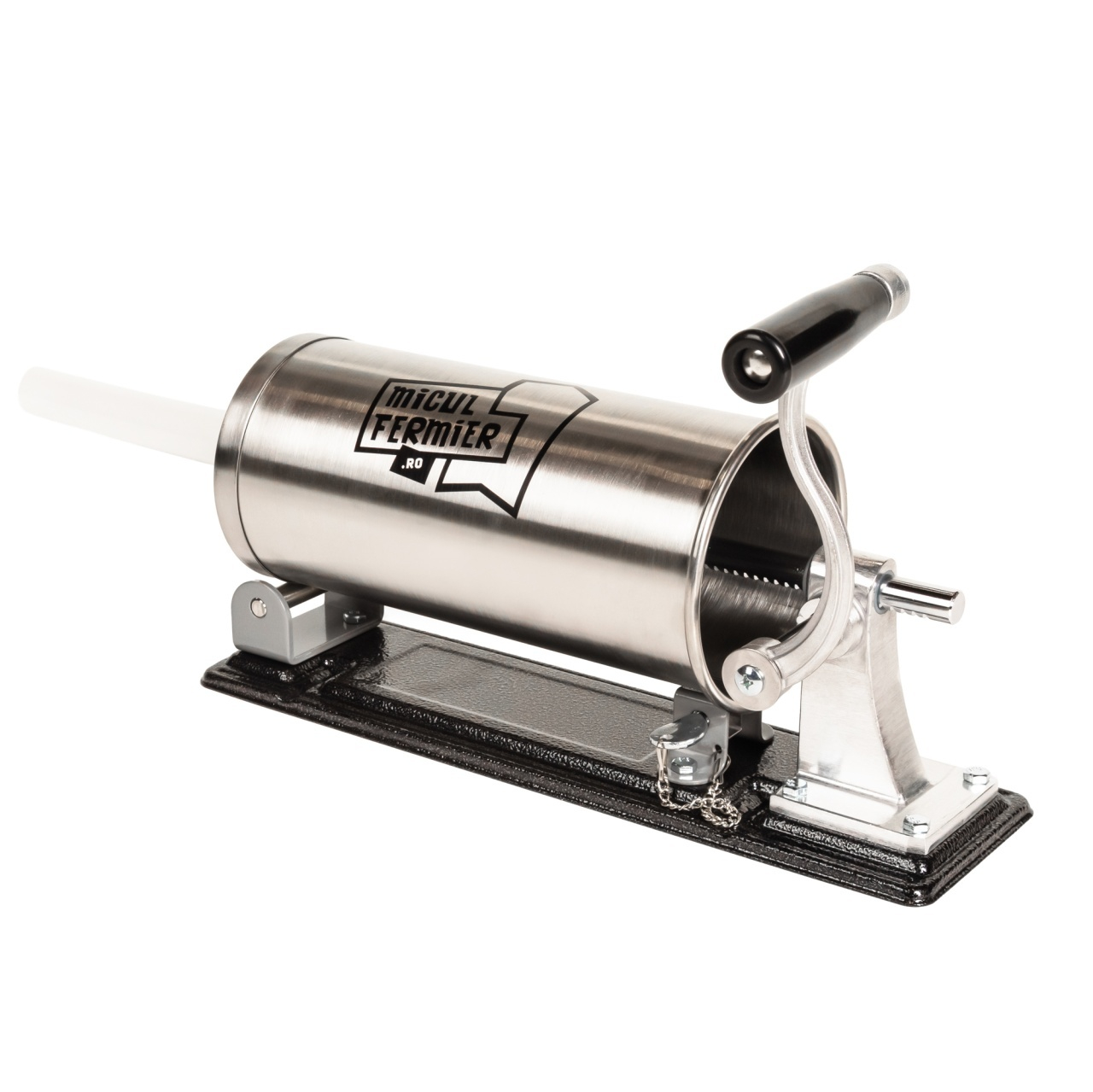 Masina de cârnați Micul Fermier, 4 kg, orizontală cu 5 pâlnii este un aparat robust și eficient, ideal pentru prepararea cârnaților de casă după rețete tradiționale, cu o capacitate generoasă și accesorii versatile.