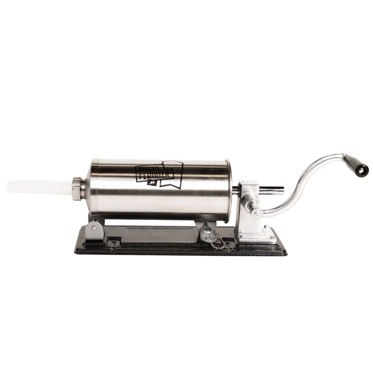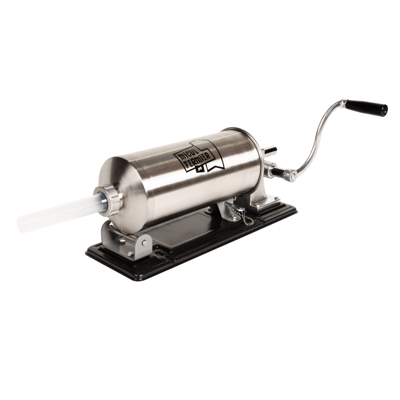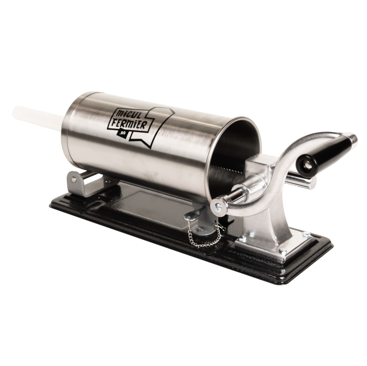 Masina de cârnați Micul Fermier, 5 kg, orizontală cu 5 pâlnii este un aparat robust și eficient, ideal pentru prepararea cârnaților de casă după rețete tradiționale, cu o capacitate generoasă și accesorii versatile.