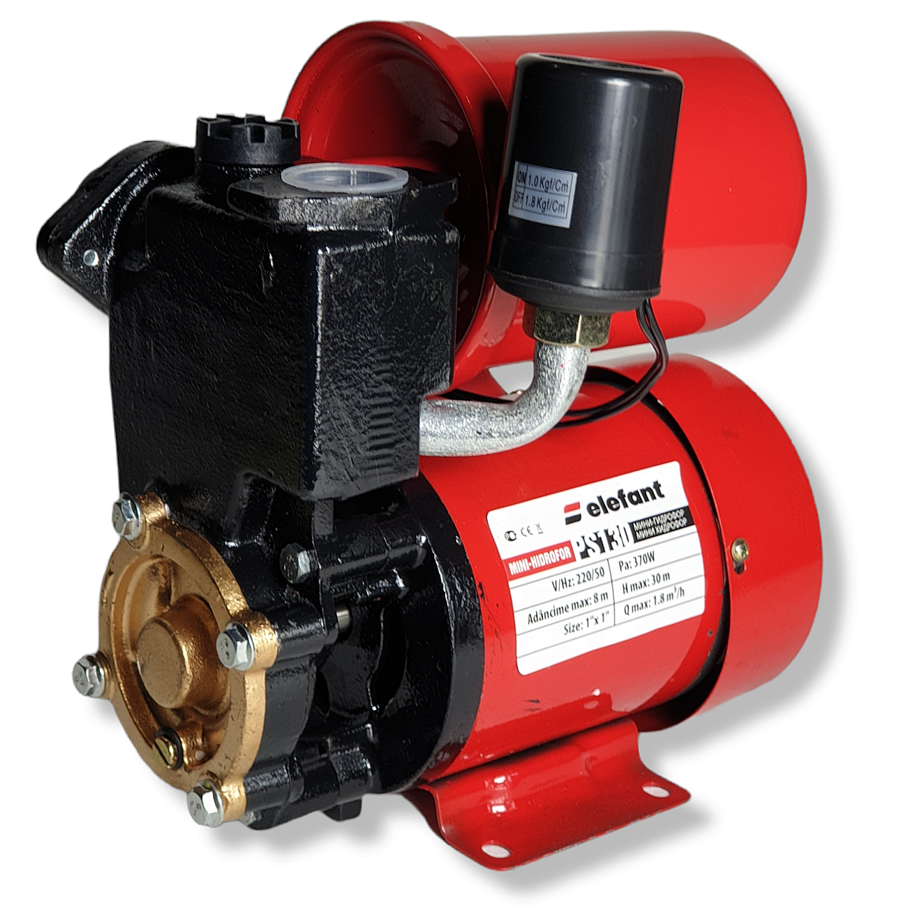 Mini hidrofor Aquatic Elefant PS130 cu turbina si vas de expansiune cu membrana de aprx. 1 litru. Hidrofor silentios pentru uzul interior cu scopul de a mari presiunea in sistemul de distributie a apei. Poate fi foarte util in apartamentele sau casele unde presiunea este mica si insuficienta bunei functionari a aparatelor electrocasnice ( masina de spalat, masina de spalat vase, chiuveta). De mentionat este faptul ca acest mini hidrofor nu este destinat pomparii apei din put, ci servirii unor circuite cu mai multi consumatori de apa unde presiunea este insuficienta. Aceasta pompa va amplifica presiunea cu ajutorul turbinei din bronz. Presostatul presetat din fabrica, nu necesita reglare. Intervalul de presiune este prevazut intre minim 1.0 bar si maxim 1.8 bari.