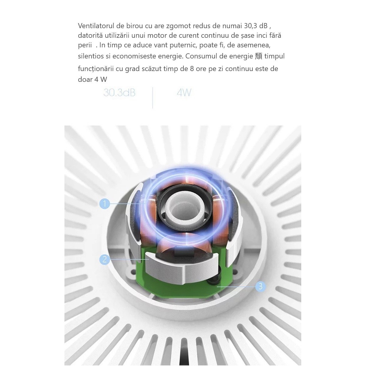 Dispunand de 4 pale de ventilator turbo si un motor fara perii, acest ventilator de birou USB este proiectat sa fie super silentios in timp ce sufla vantul natural confortabil. Ideal pentru utilizare in medii linistite, cum ar fi birouri, dormitoare, camere pentru copii, biblioteci si camine.