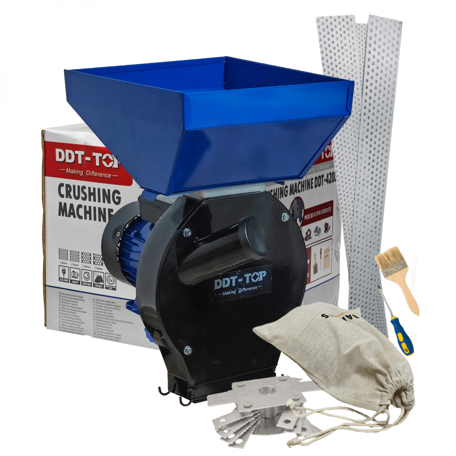 Moara electria echipa cu o cuva mare si utilizata pentru macinat cerealele. Produsul este fabricat din materiale de calitate ce o ofera o rezistenta la utilizare in timp si poate macina pana la 320 kg pe ora. Moara pentru macinat are un motor electric puternic de 4200 W pentru a face fata cu brio oricarui tip de cereale, furaje, fructe.