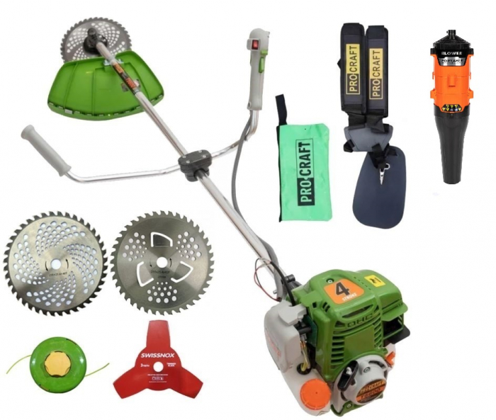 Motocoasa pe benzina in 4 timpi, Procraft T5600, 6.3 Cp, 62 CC, 5 acc. incluse + Accesoriu pentru suflat frunze