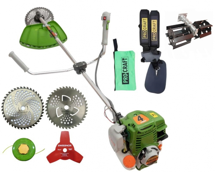 Motocoasa pe benzina in 4 timpi, Procraft T5600, 6.3 Cp, 62 CC, 5 acc. incluse + Prasitoare 28mm *9T