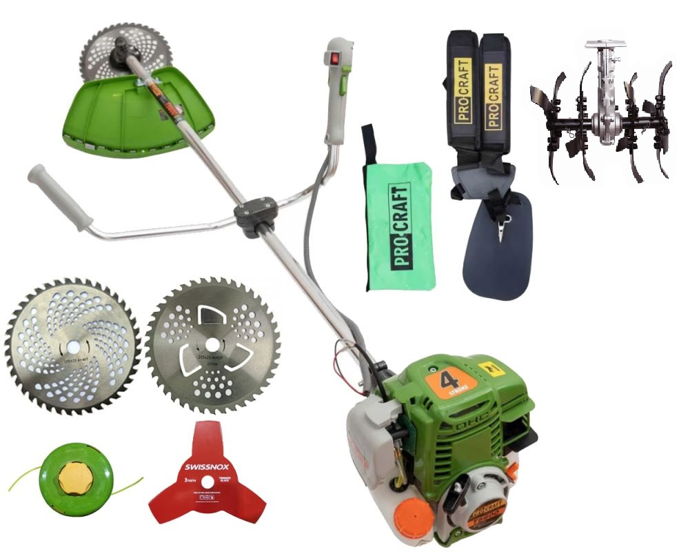Motocoasa pe benzina in 4 timpi, Procraft T5600, 6.3 Cp, 62 CC, 5 acc. incluse + Cultivator 28mm *9T