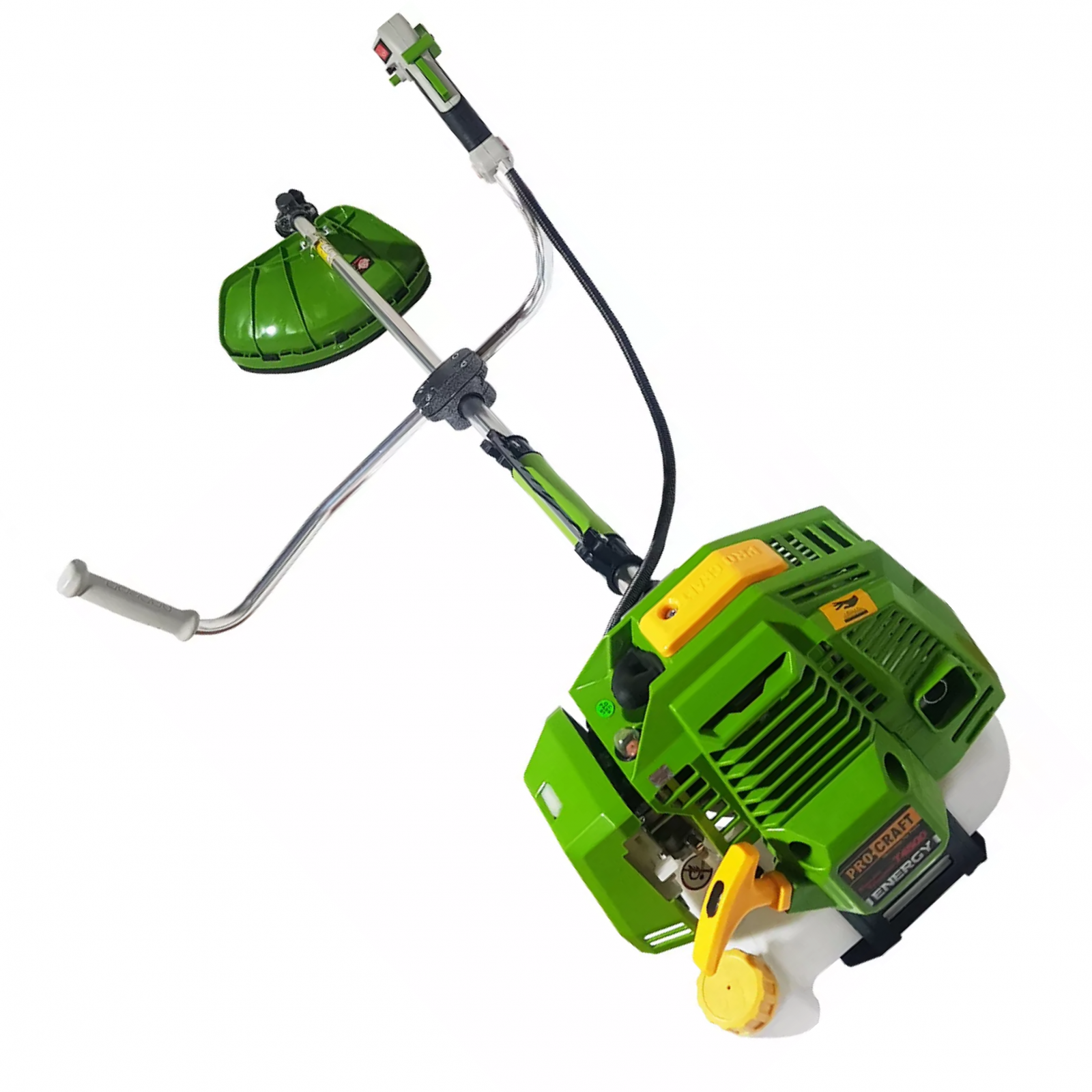 Motocoasa pe benzina Procraft T4500 (model profesional). Motocositoarea se asambleaza din piesele originale si poate lucra sub incarcaturi mari. Motorul este echipat cu un carburator fiabil si economic si cu un sistem de aprindere imbunatatit si dorat cu POMPA DE AMORSARE. Datorita unui starter fiabil cu functia "pornire usoara", motorul porneste usor si fara probleme. Motocoasa este echipata cu un maner special pentru acceleratie si fixare armata a butoanelor de comanda. Rezervorul este protejat in mod fiabil prin protectia de metal. Filtrul profesional si fiabil, montat pe motocoasa, mareste semnificativ durata de viata a pistonului.