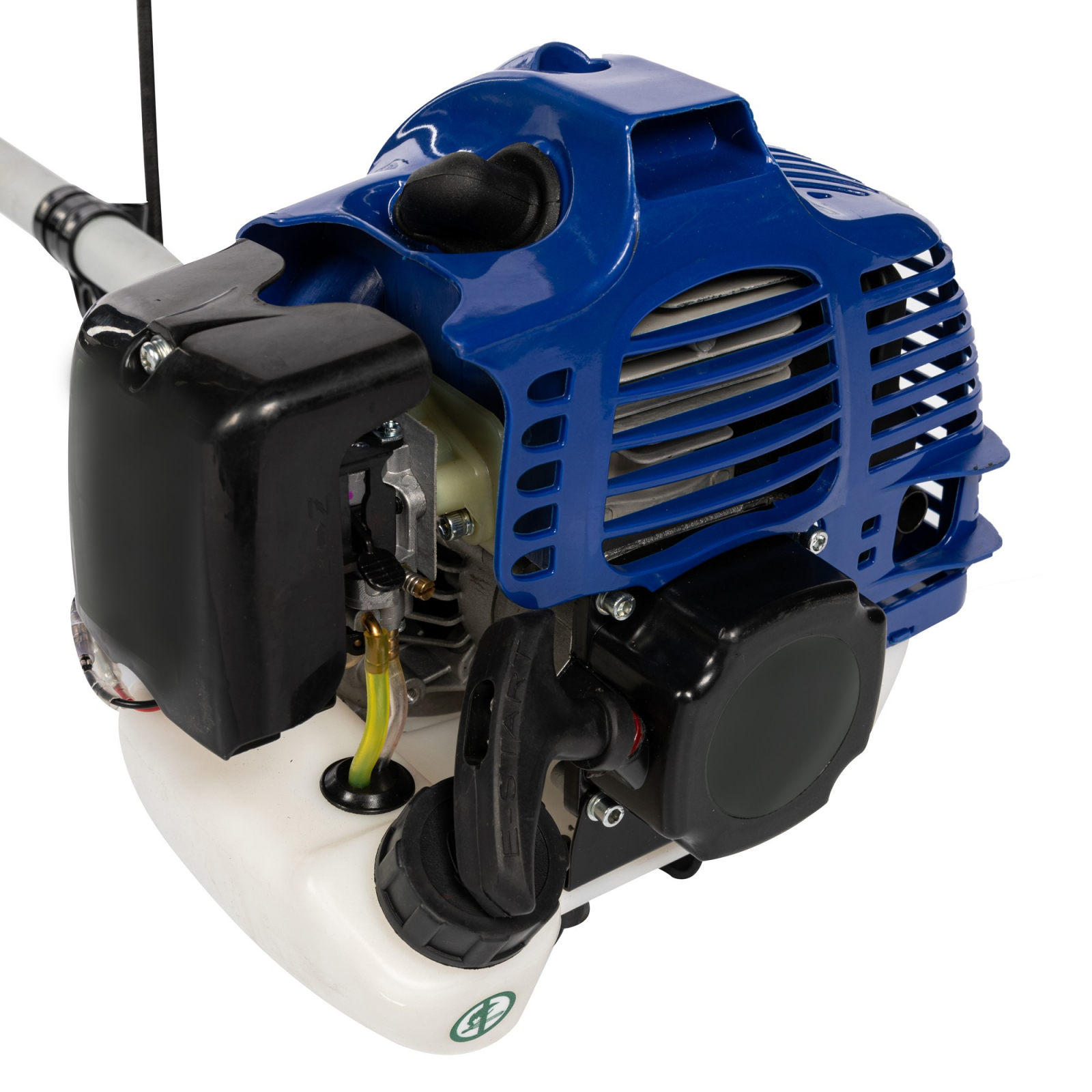 Motocoasa este dotata cu un motor in 2 timpi si functioneaza cu amestec de benzina si ulei intr-o proportie de 25 ml ulei la 1L benzina.
