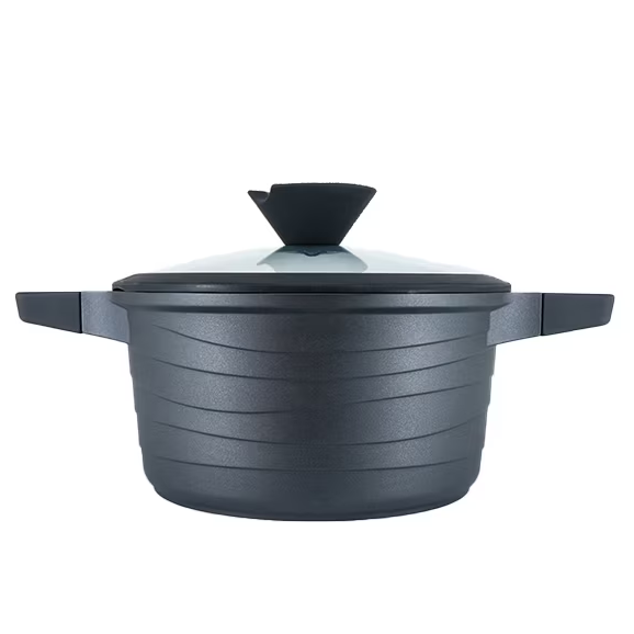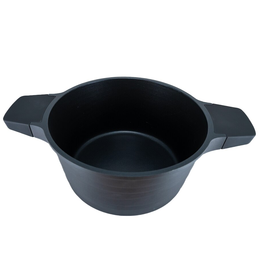 Oala aluminiu, capac din sticla cu maner de silicon diametru 20 cm, 2.7l, culoare black pro, cod 55872-20