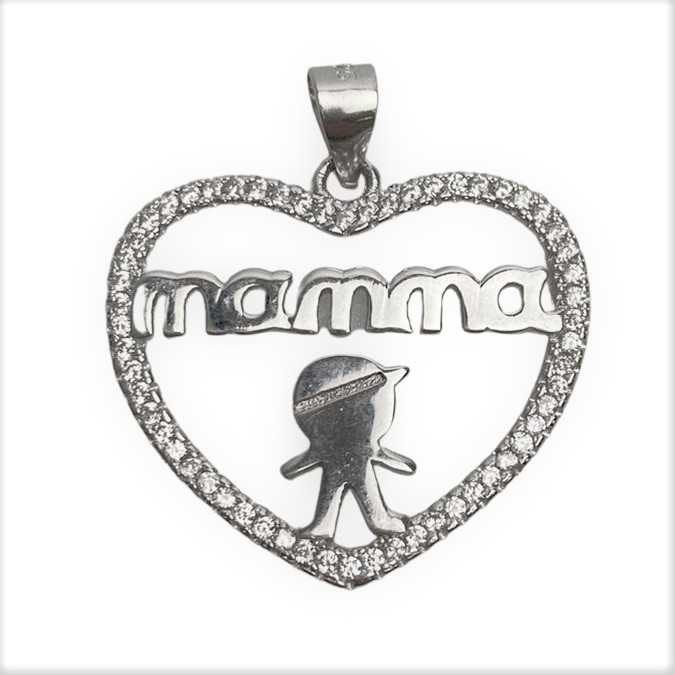 Pandantivul "Mamma" este realizat din argint 925 si placat cu rodiu, pentru o stralucire mai intensa si pentru a nu se oxida in timp.