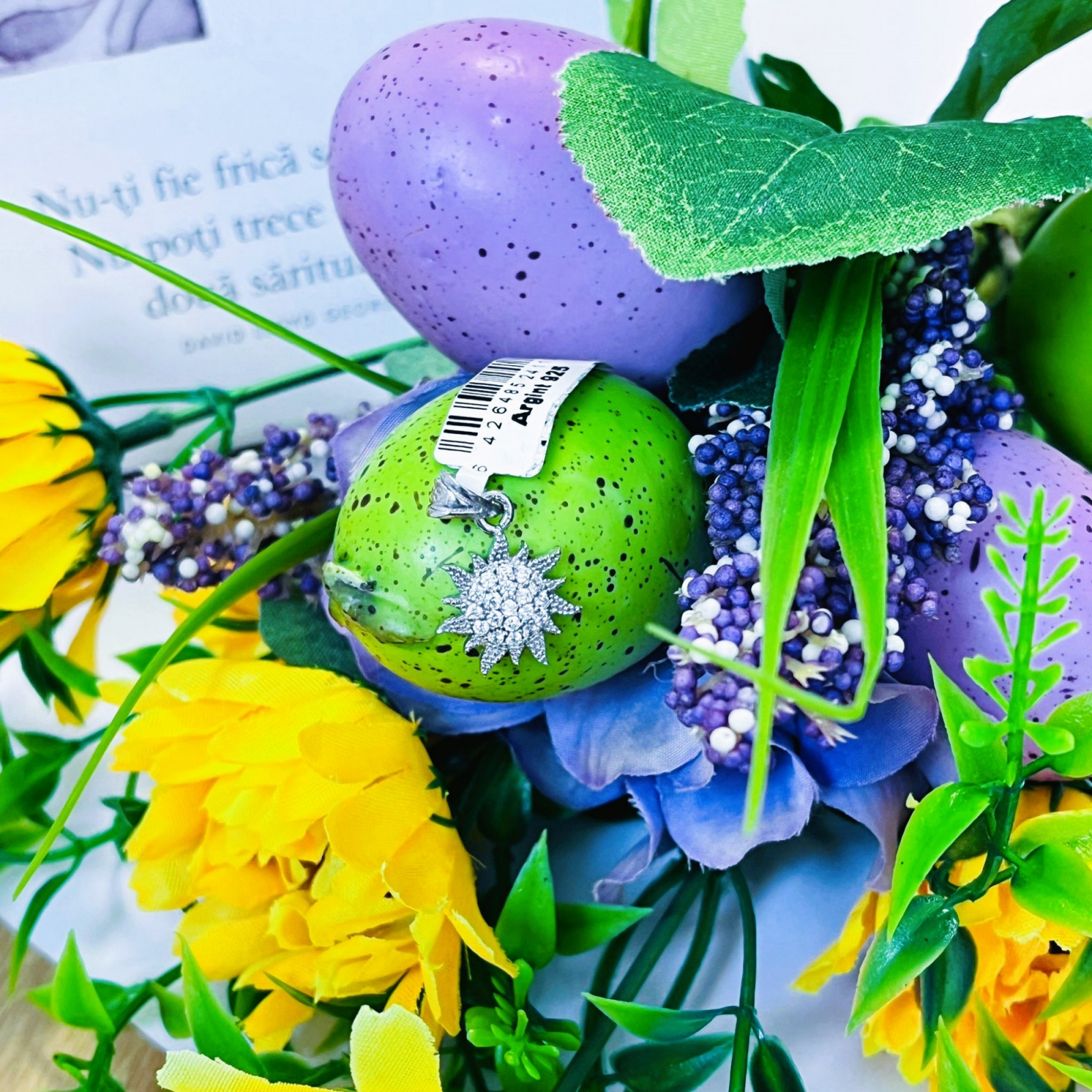 Pandantiv din Argint 925 Jolie Silver, Model Soare cu Zirconii, 20 x 14 mm, 1.8 g se livreaza in cutie pentru bijuterii, impreuna cu certificatul de garantie.
