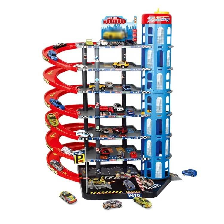 Parcare de jucarie supraetaja cu 7 nivele, 8 masinute metalice,accesorii