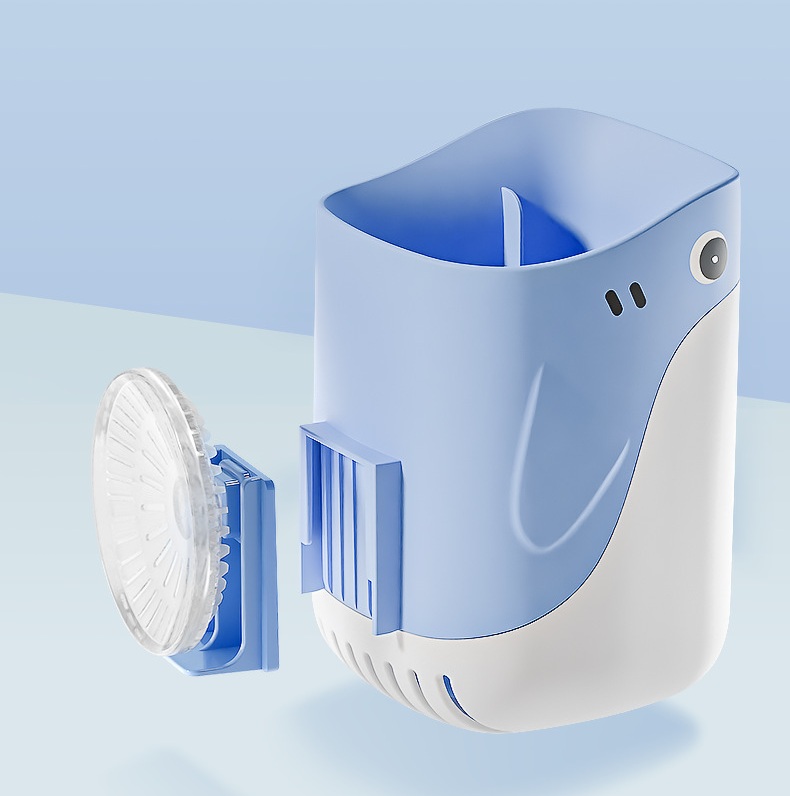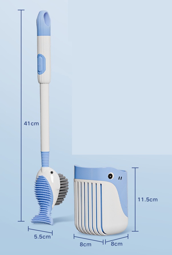 Perie de Toaleta, Flippy, cu Suport de Perete, Recipient Detergent, 2 Tipuri de Perii, Model Balena, Albastru