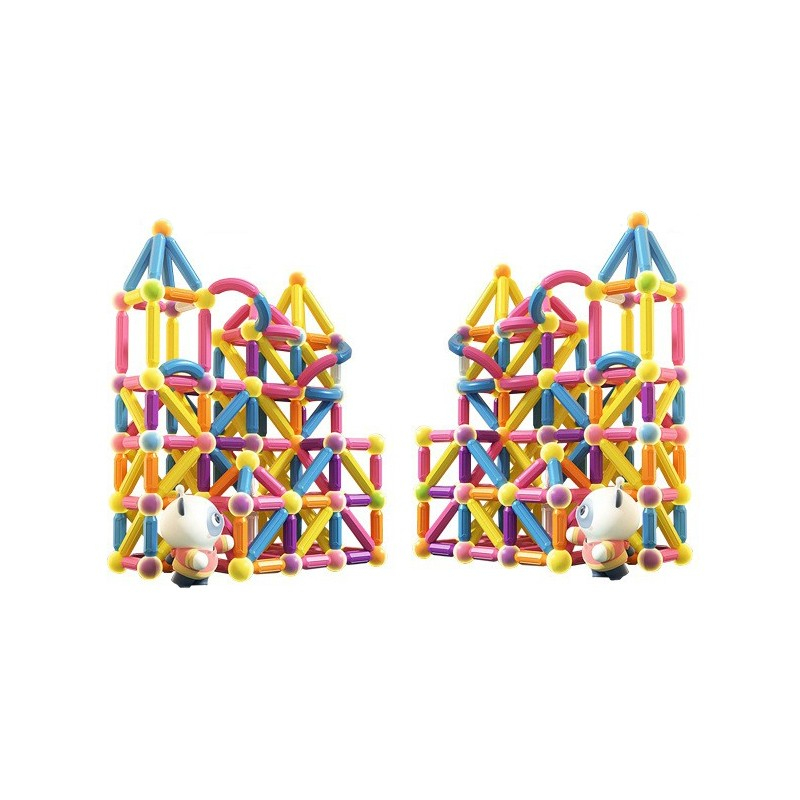 Piesele sunt realizate din materiale rezistente si sigure pentru copii, avand magneti integrati care asigura o fixare stabila. Copiii pot crea constructii variate, precum turnuri, casute, forme geometrice sau structuri abstracte, dezvoltandu-si coordonarea mana-ochi si creativitatea.