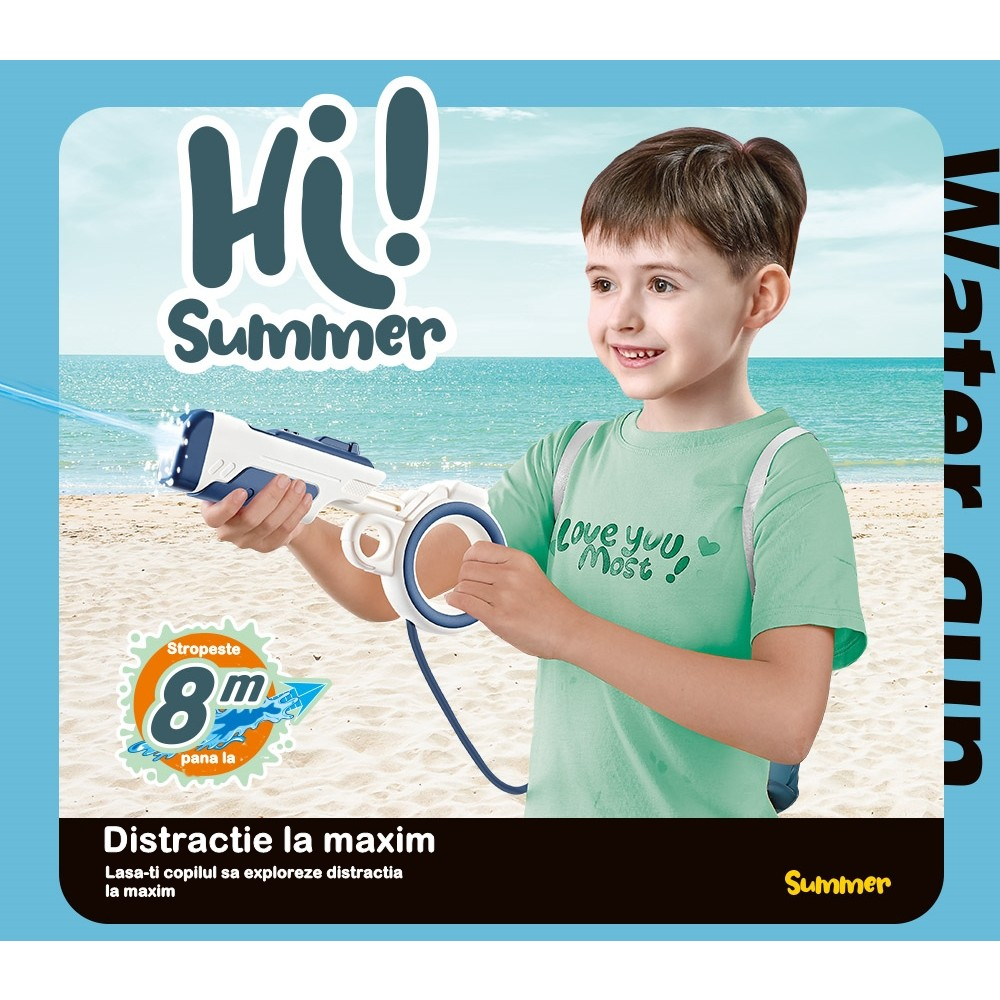 Distanță de improscare impresionantă: Cu o distanță de improscare de până la 8 metri, acest pistol oferă copiilor posibilitatea să se bucure de jocuri active în aer liber. Această caracteristică adaugă un element de competitivitate și entuziasm în timpul jocurilor cu apă.