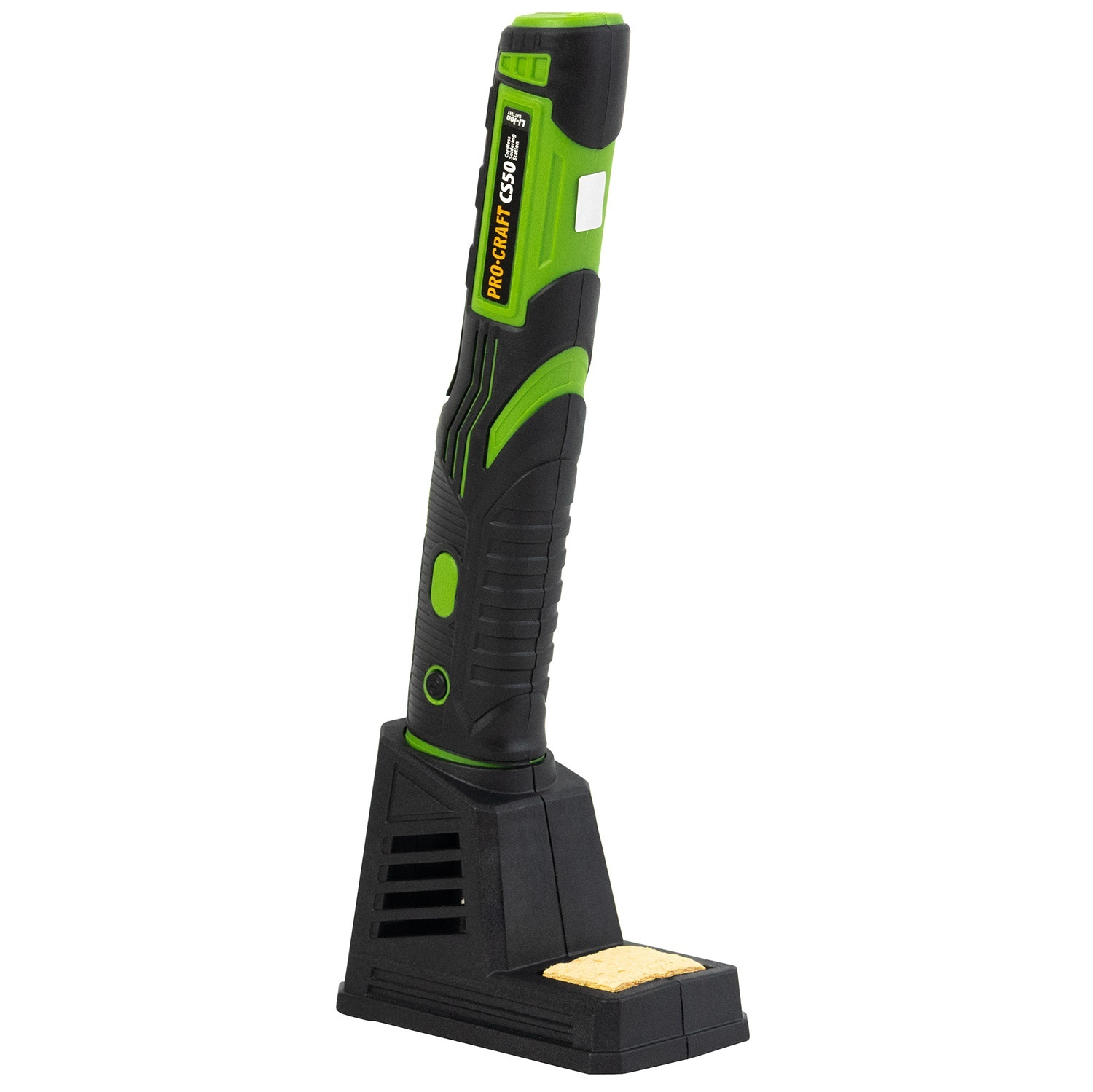 Pistolul de lipit universal PROCRAFT CS50 este ideal pentru lucrări precise de lipire, bricolaj și reparații mici. Alimentat de un acumulator de 3,7 V, acesta oferă până la 60 de minute de funcționare continuă, permițând realizarea proiectelor fără restricții de cablu.