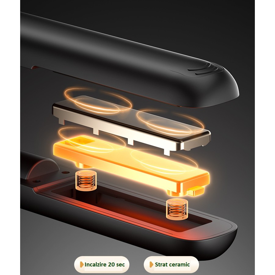 Material: Placă ceramică pentru încălzire uniformă și protecție a părului.