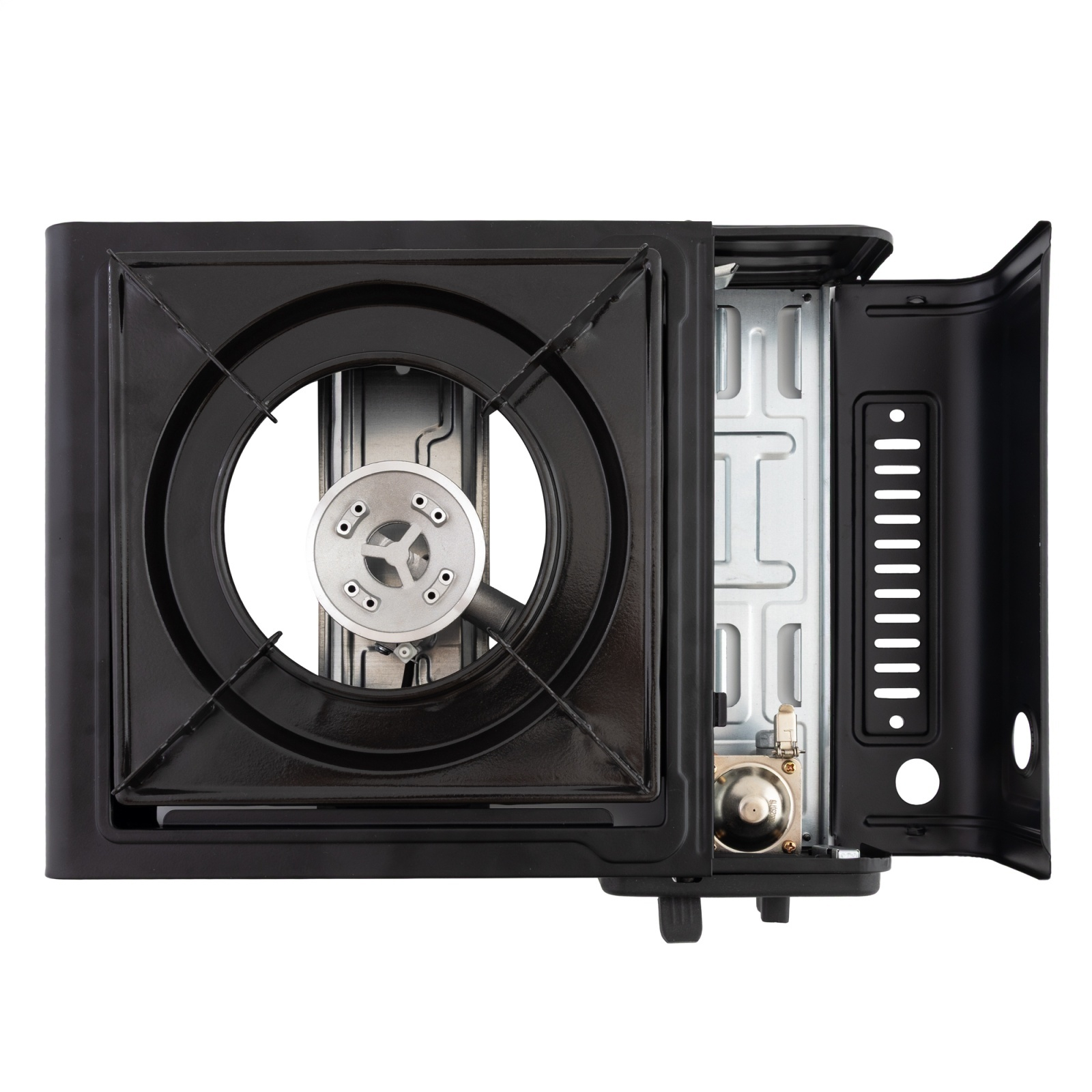 Echipată cu un singur arzător pe gaz GPL, plita oferă o putere termică totală de 2.3 kW, suficientă pentru încălzire rapidă și eficientă a alimentelor sau lichidelor. Această putere permite fierberea apei în timp scurt și găsirea unei intensități potrivite pentru diferite stiluri de gătit în aer liber. Arzătorul este bine optimizat pentru consum redus, ceea ce o face ideală pentru sesiuni lungi de utilizare.
