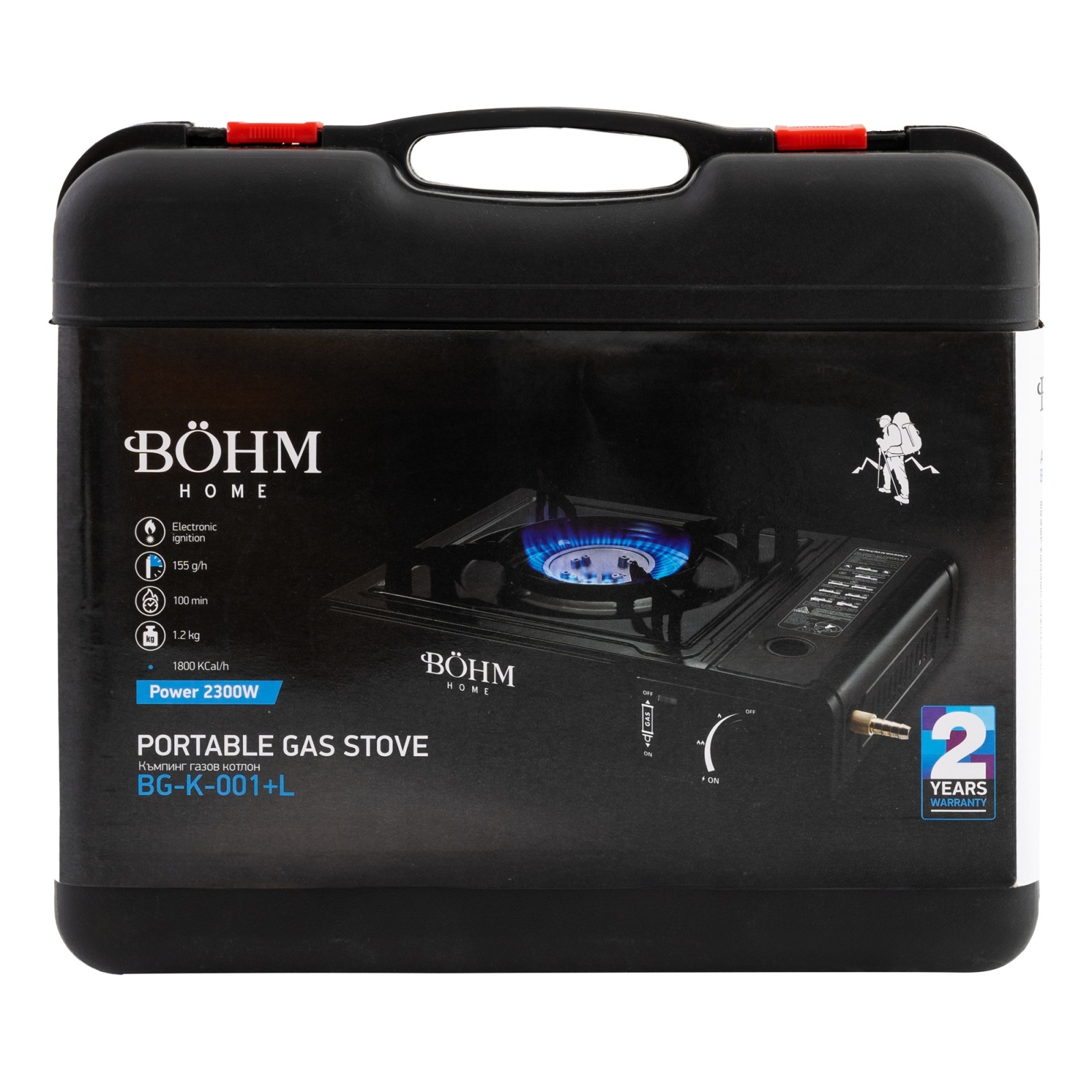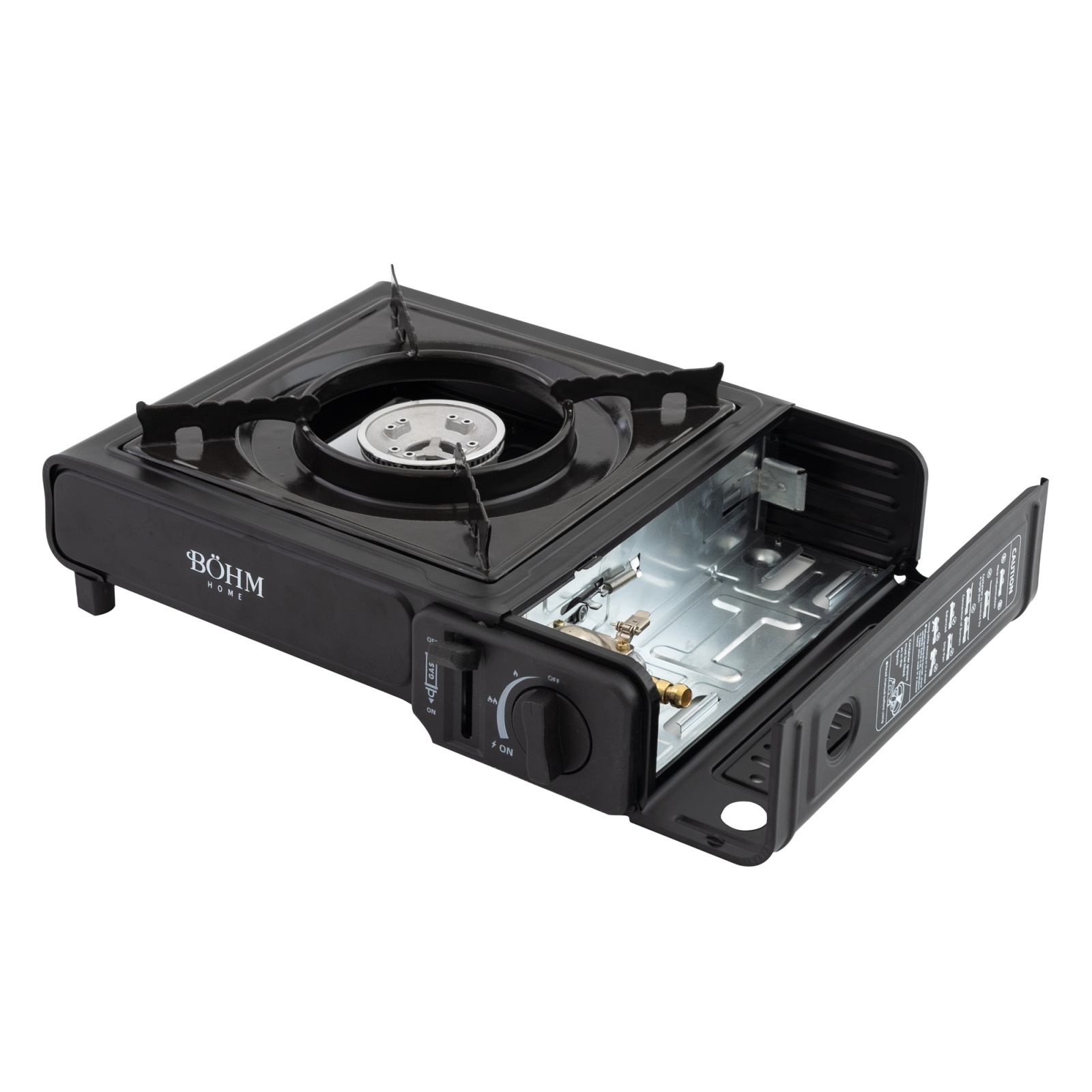 Plita BÖHM BG-K-001+L reprezintă o soluție avansată pentru gătit în aer liber, fiind creată special pentru utilizatorii care au nevoie de portabilitate, eficiență și siguranță. Cu un design compact și o carcasă rezistentă de culoare neagră, acest model este ideal pentru camping, grătare, pescuit, excursii montane sau orice activitate ce necesită o sursă de gătit rapidă și ușor de transportat.