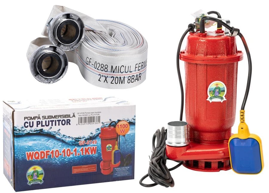 Pompa submersibila pentru apa murdara, WQD10-10-1.1, 16m, ROSIE cu plutitor, Micul Fermier GF-0749 poate fi folosita, atat in mediu urban cat si in mediu rural, pentru ridicarea apei murdare pana la 15m in instalatii fixe sau temporare pentru: vidanjare fose septice/ instalatii de tratare a apei/ ape noroioase, pluviale sau reziduale/ scoaterea apei din beci sau puturi/ golirea puturilor de decantare.