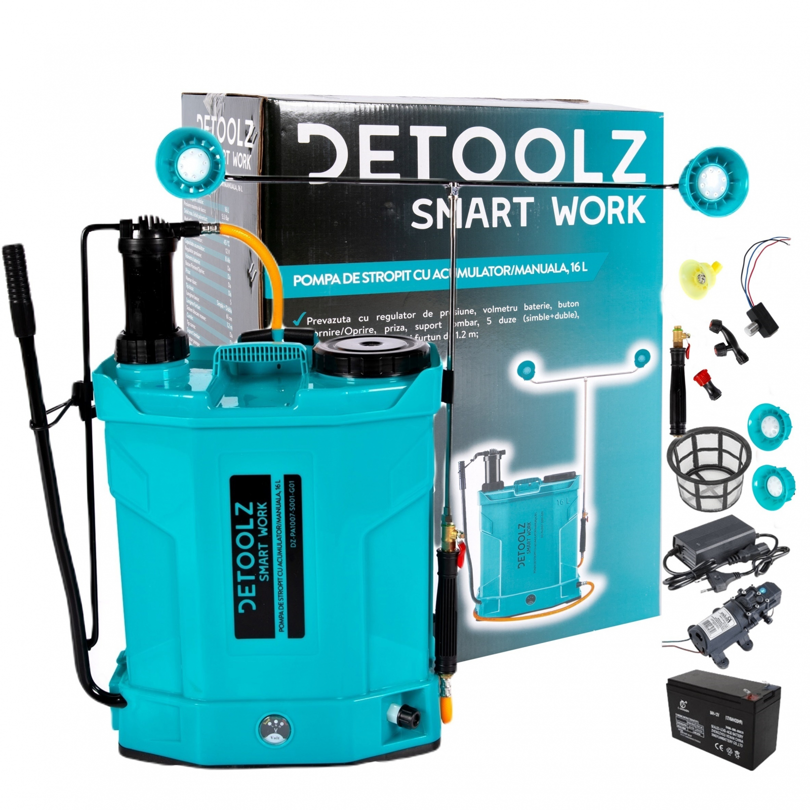 Pompa de stropit 2 in 1 ( acumulator si manuala) 16L, DZ-PA1007-S001-G01 este potrivita pentru pulverizarea de solutii apoase care contin: