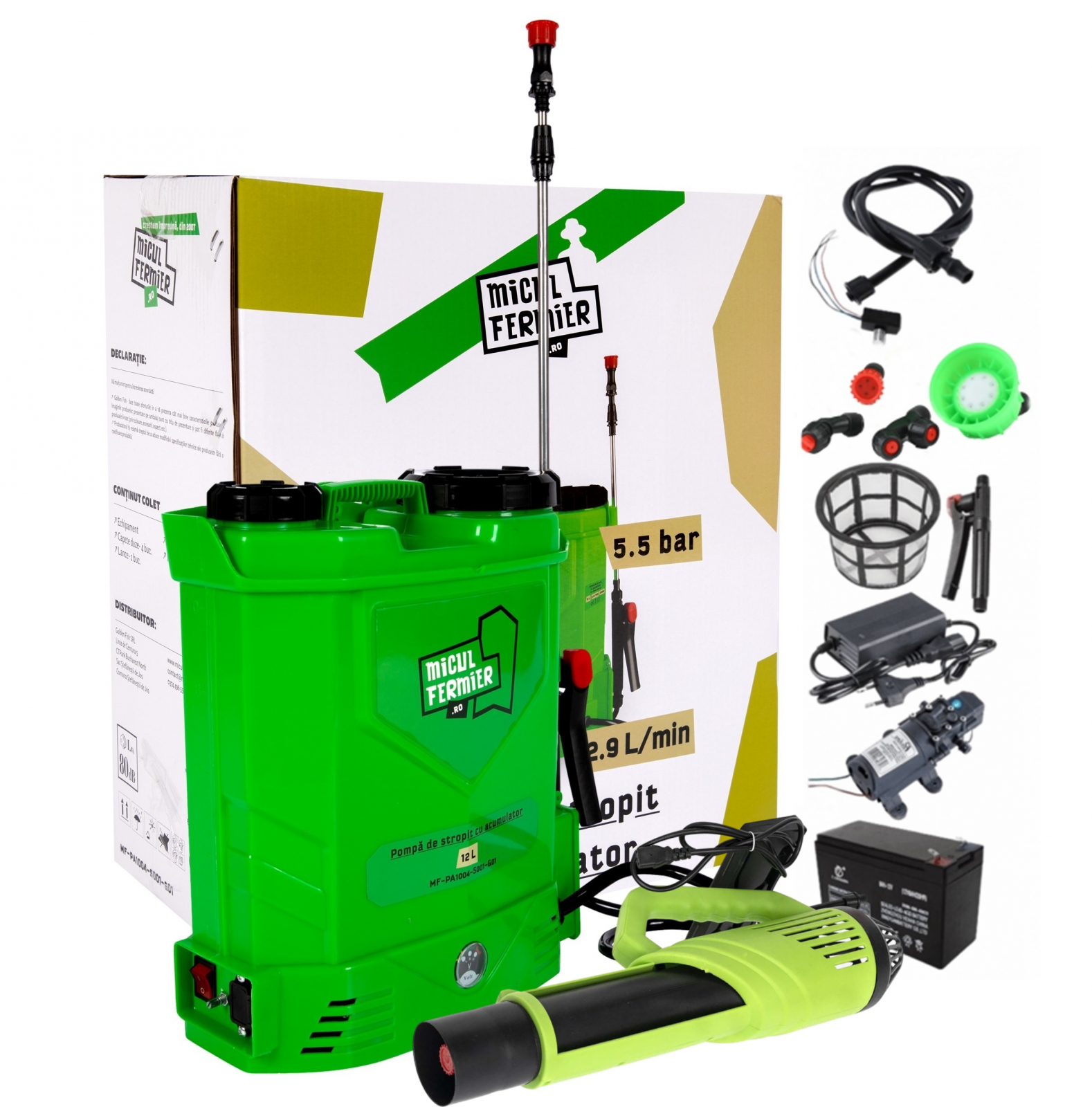 Pompa de stropit cu acumulator,12 litri, Micul Fermier GF-1516 este un produs eficient si usor de utilizat pentru lucrari de pulverizare a apei sau diverse substante chimice diluate in apa, cum ar fi: