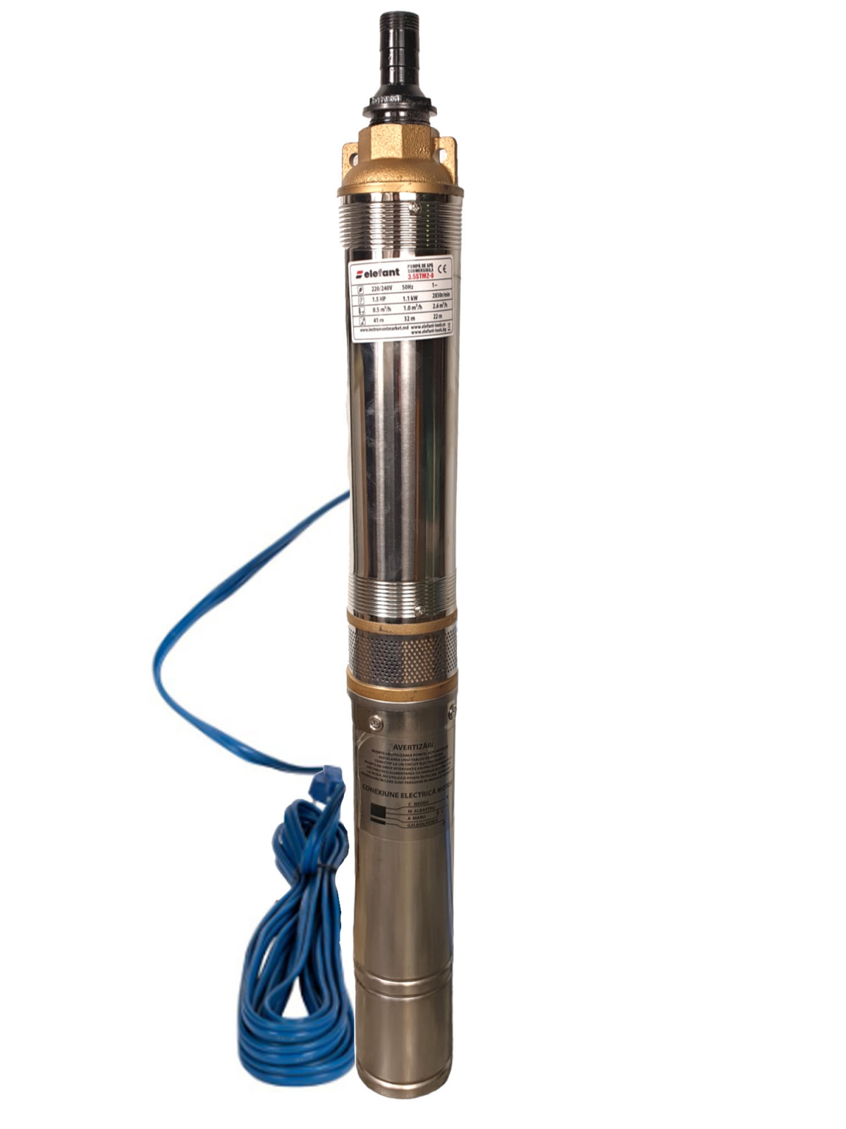 Pompa Submersibila Elefant 3.5STM2-8 Continut pachet : Pompa SubmersibilaPutere (watti) : 1000 WTip motor : ElectricaMaterial : InoxTip pompa : SubmersibilaDebit maxim : 2.6 m3 / hLungime cablu: 8 m